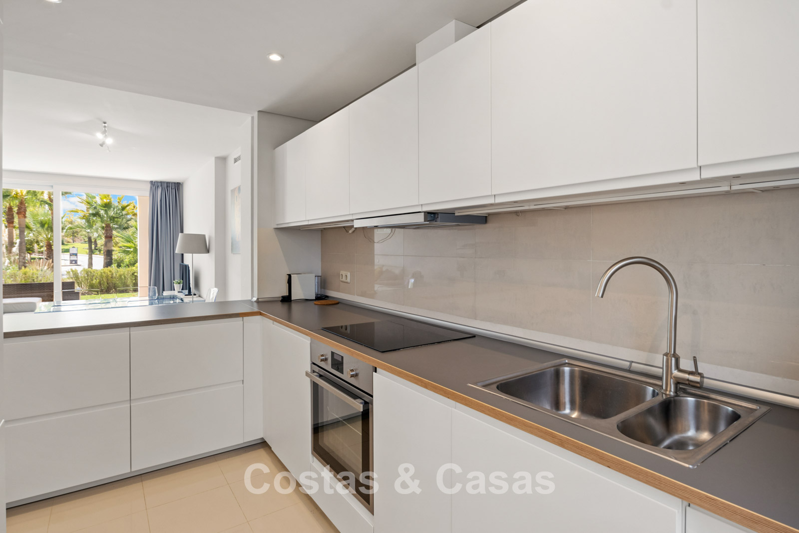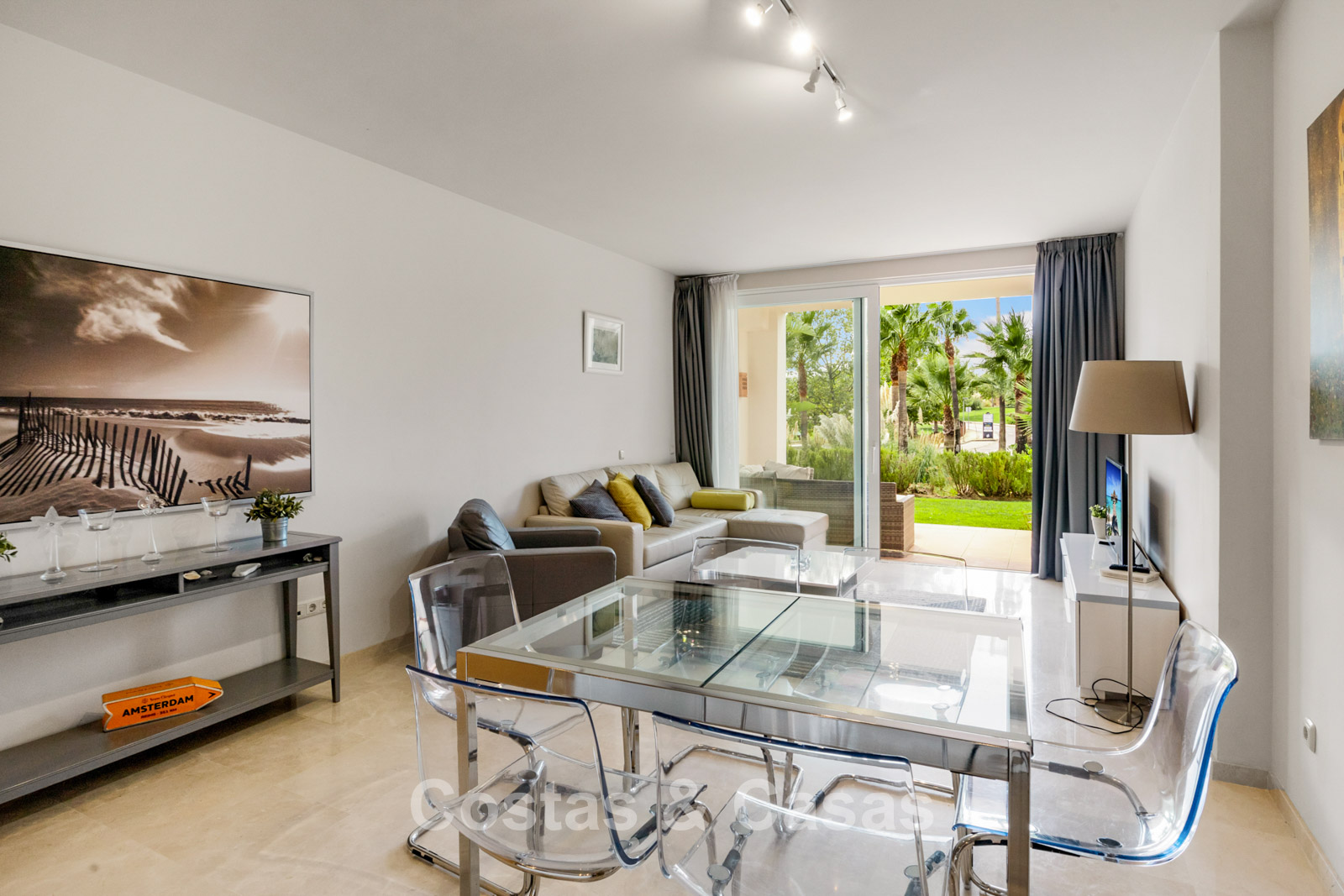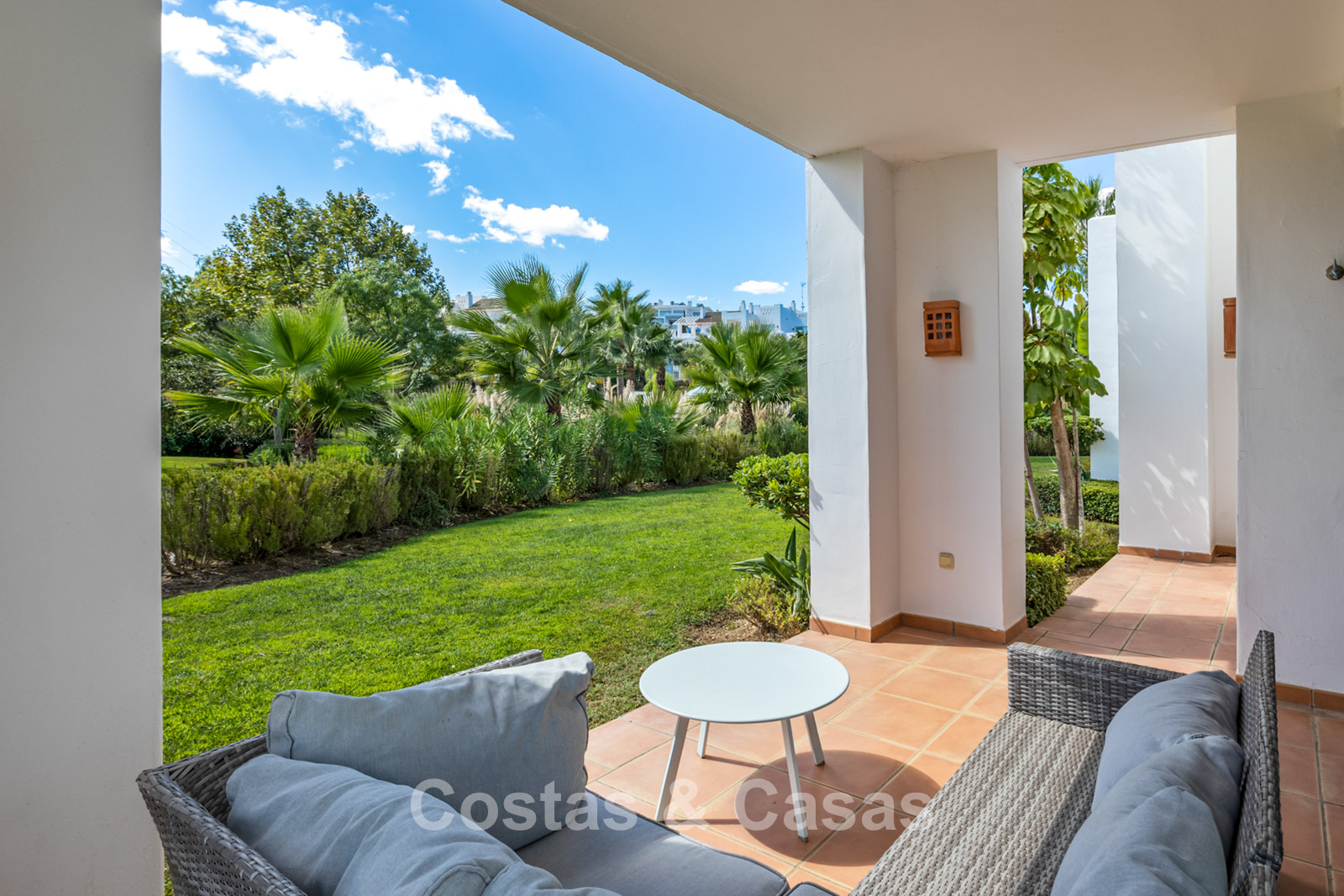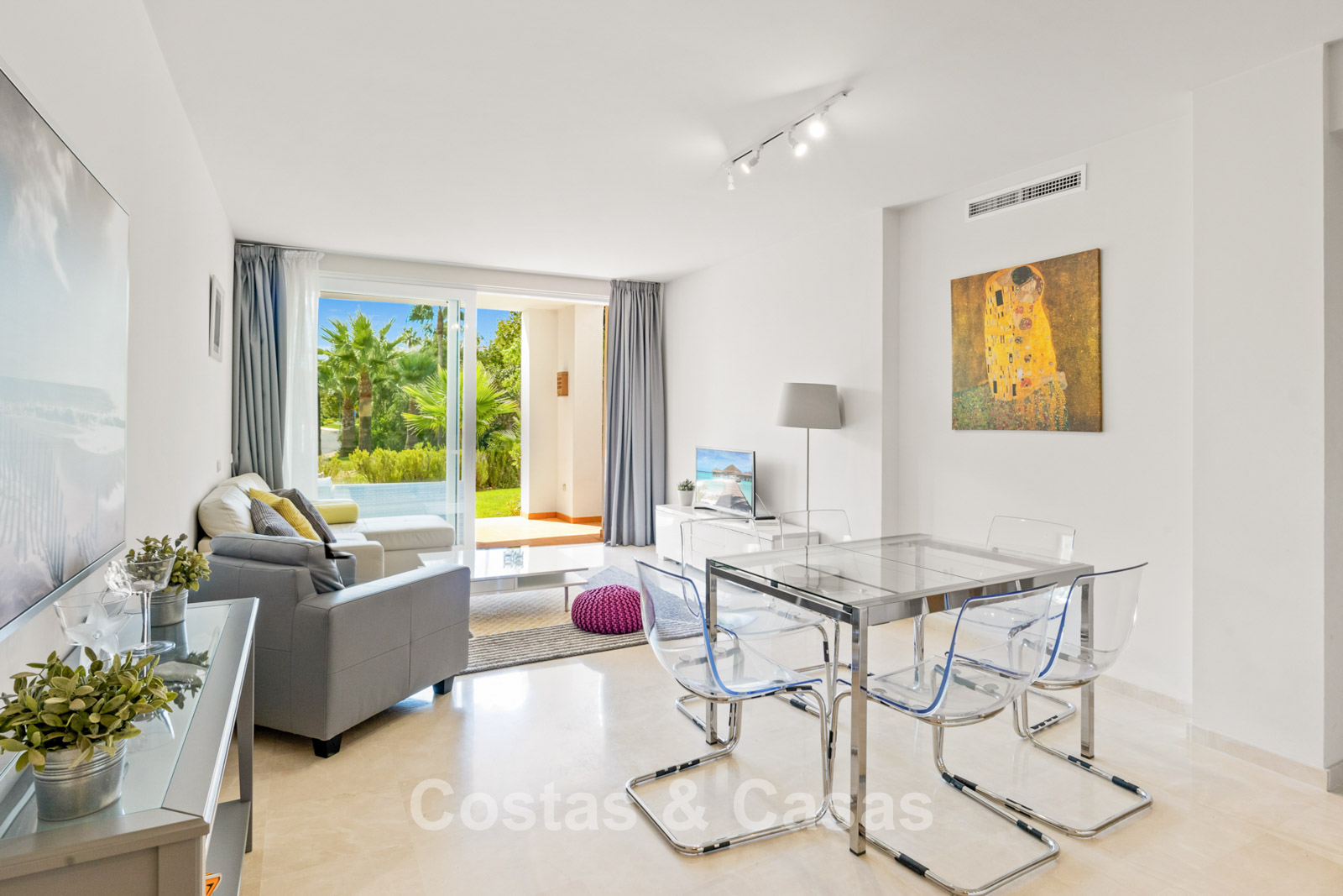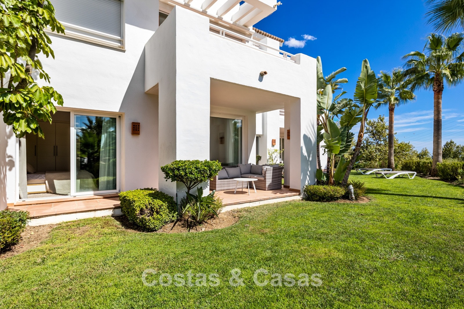 Instapklaar, 2-slaapkamer tuinappartement te koop in een exclusief complex nabij een grote blauwe lagune aan de Costa del Sol