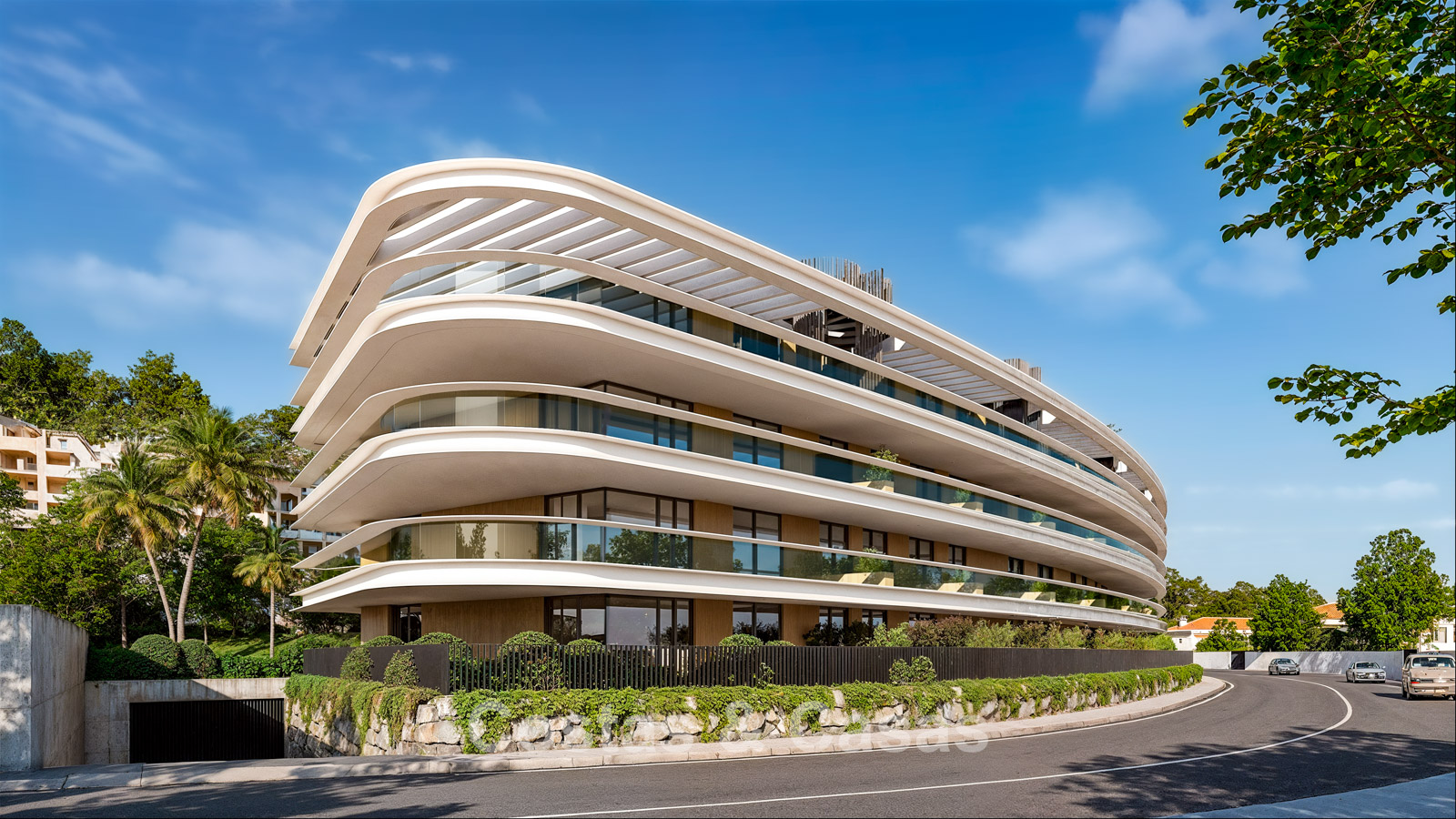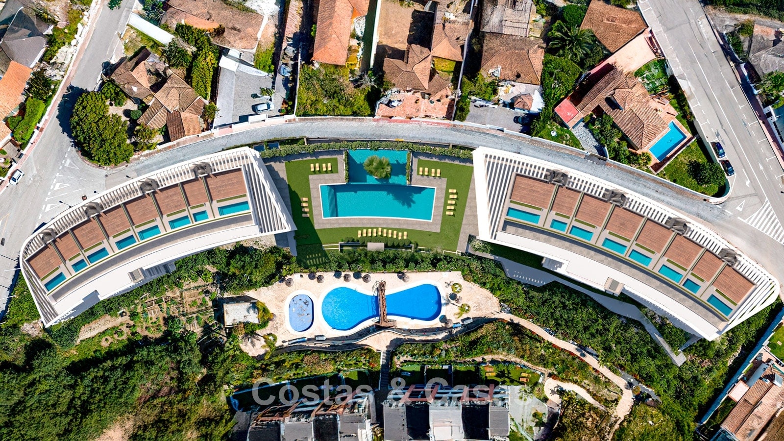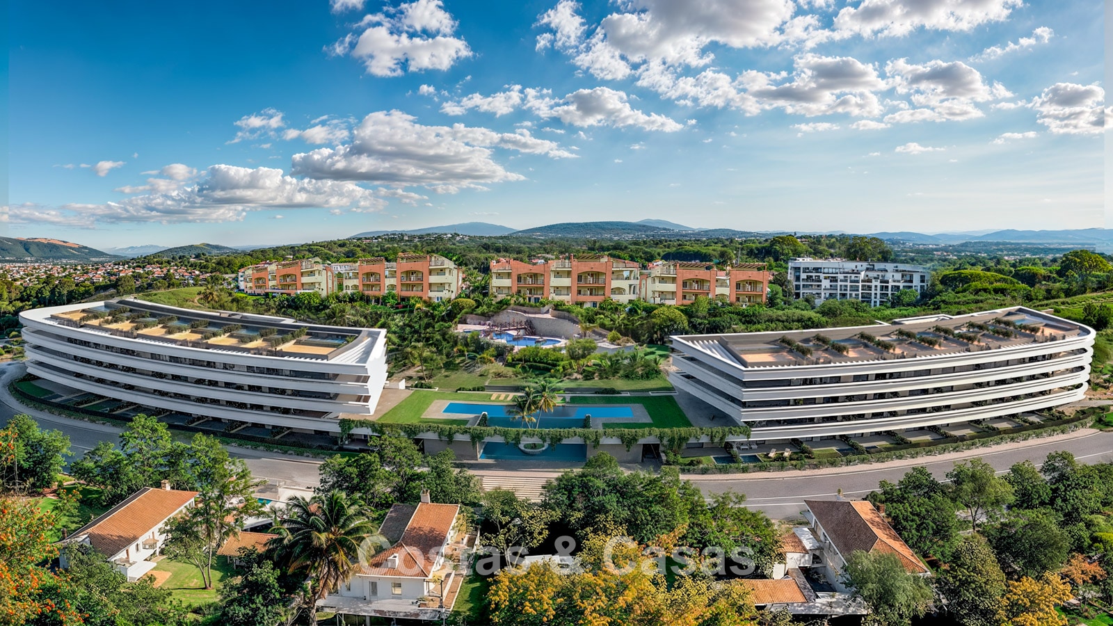 Het complex bestaat uit 64 units, verdeeld over twee elegante, halvemaanvormige gebouwen, elk met een begane grond, eerste verdieping, 2e verdieping en penthouses.