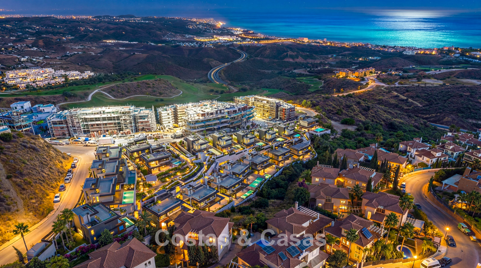 1.110.000 €Herverkoop! Nieuwbouwwoning te koop met golf- en zeezicht, op een steenworp van de Golf Club in Mijas Costa, Costa del Sol