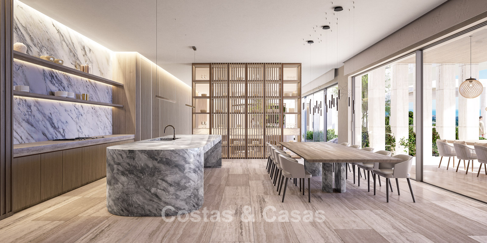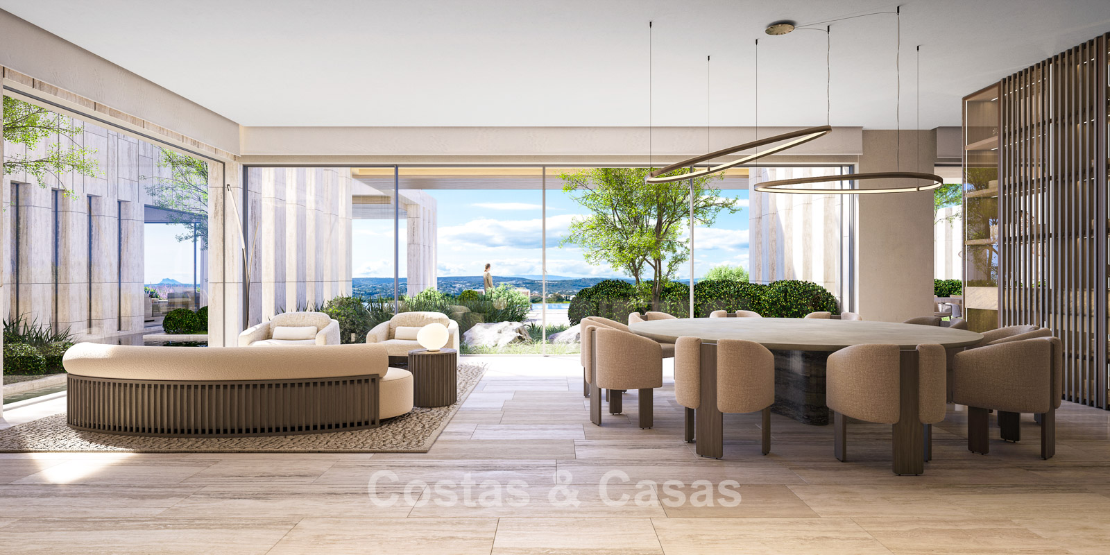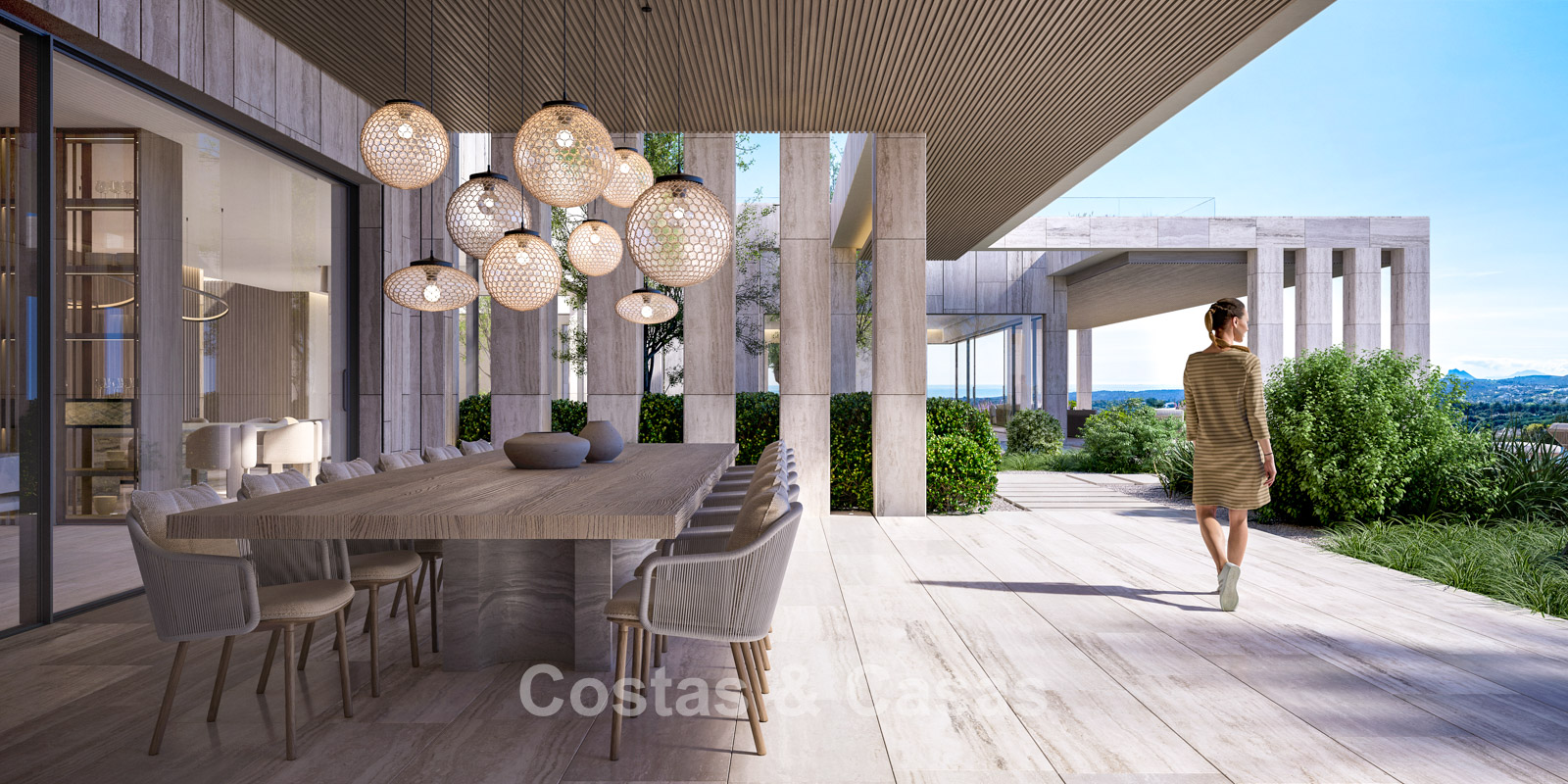 De uitgestrekte open en overdekte terrassen vormen ideale settings voor stijlvolle relax- en diningopstellingen.