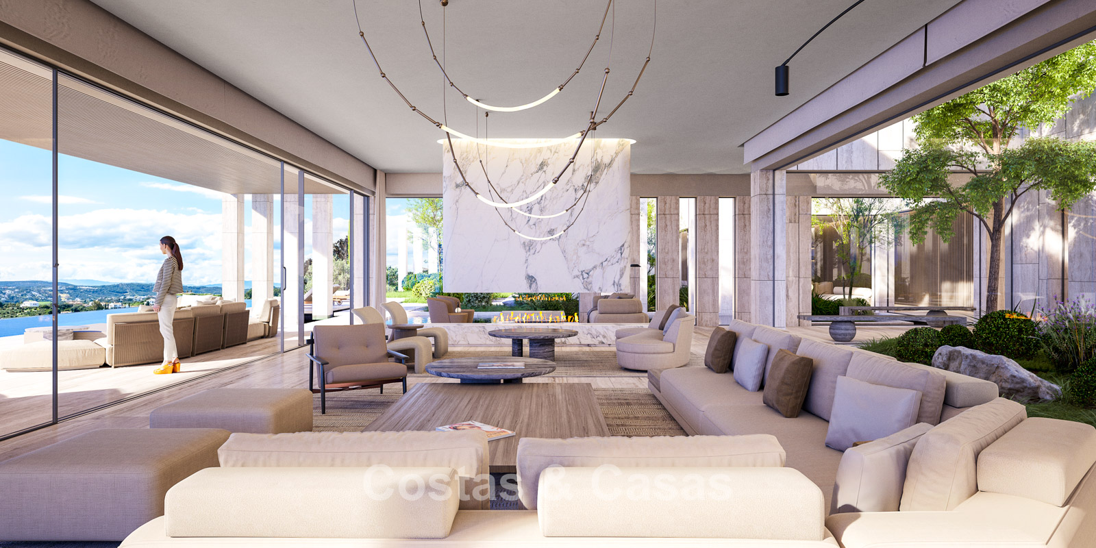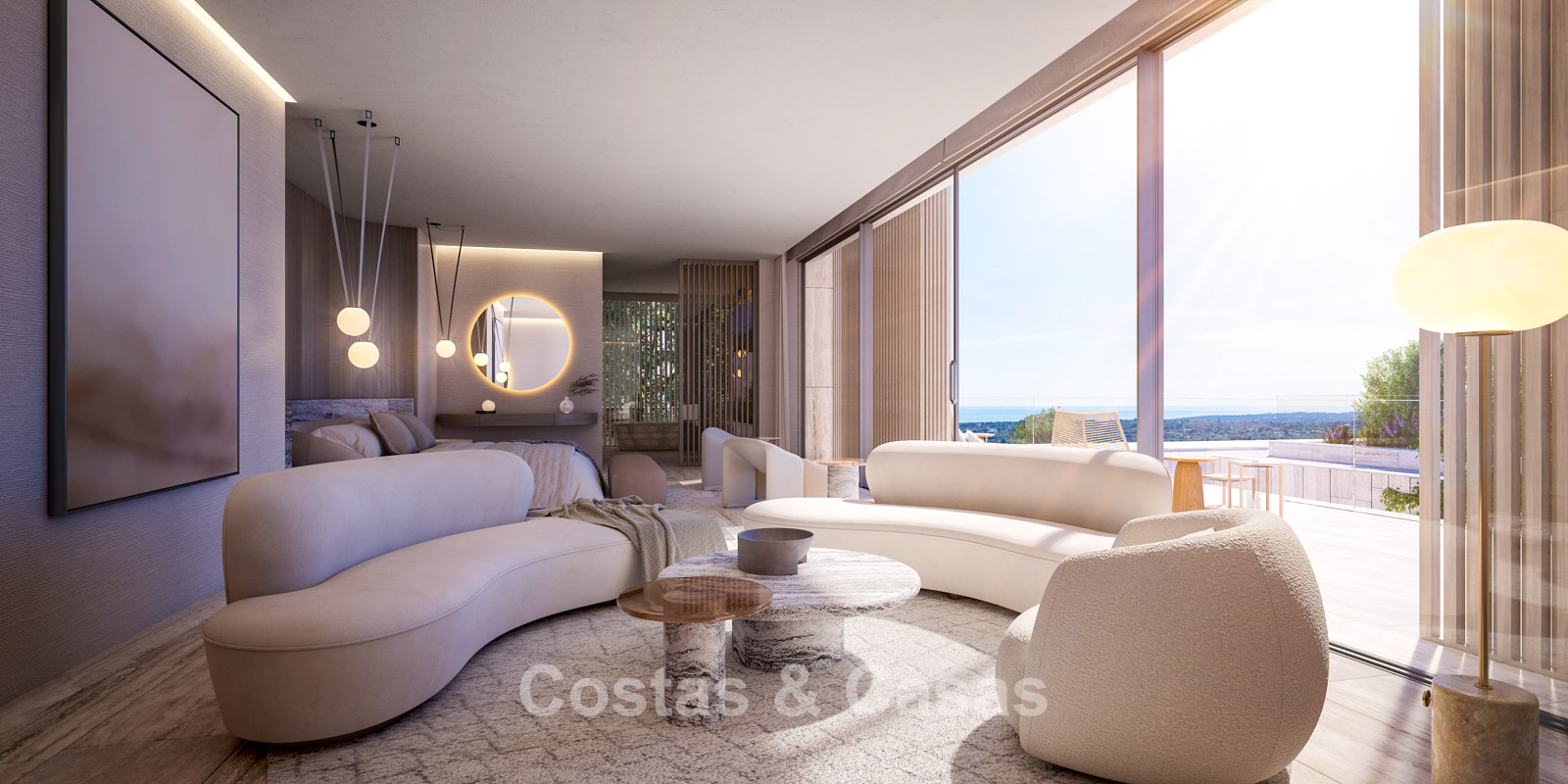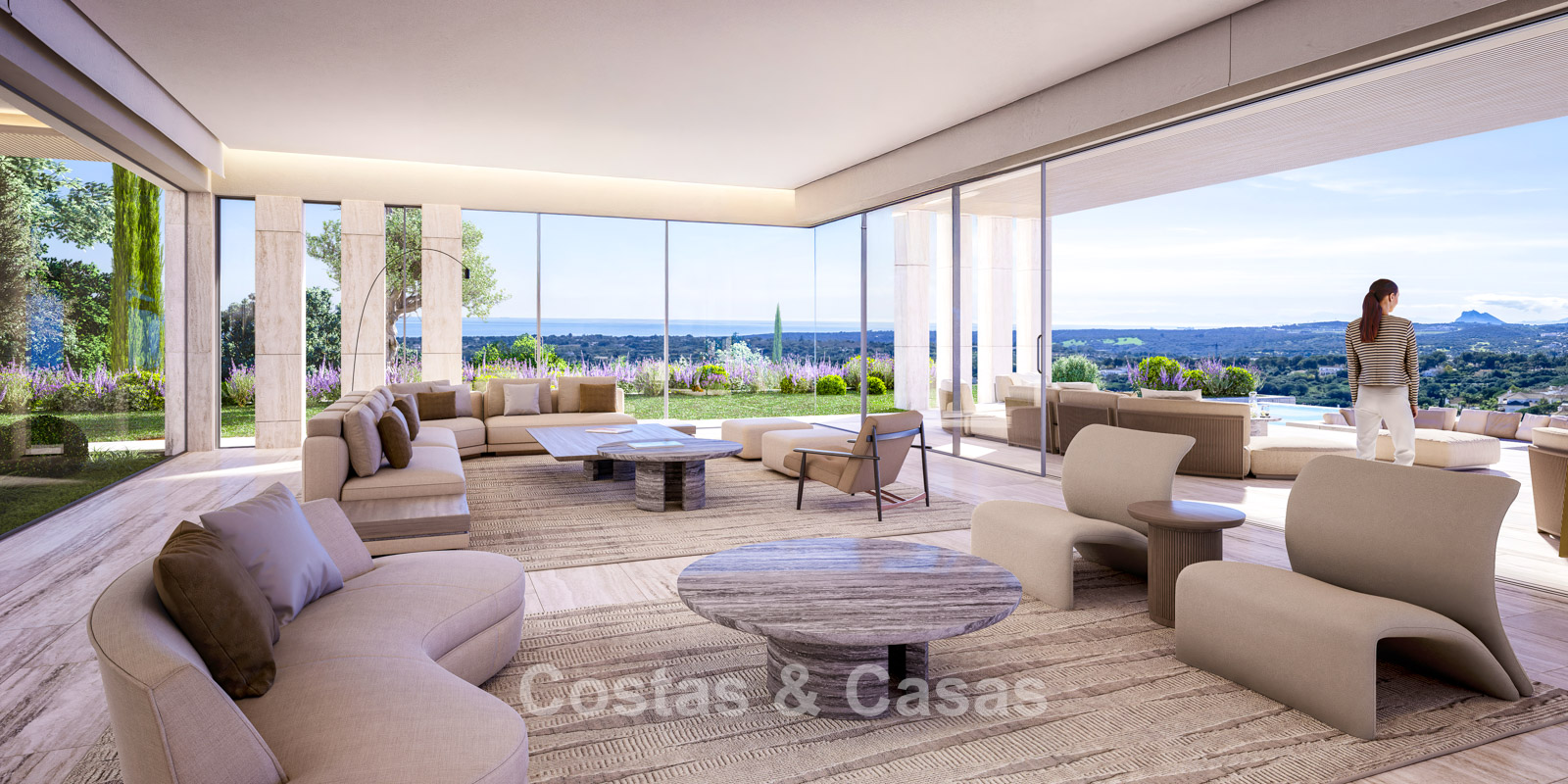 Ongeëvenaarde panoramische uitzichten over de golfbanen en de kustlijn, reikt tot aan Gibraltar, Afrika en de schitterende Middellandse Zee.