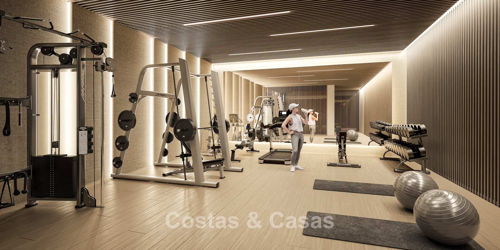 Volledig uitgeruste fitnessruimte met aanpalend een massageruimte.