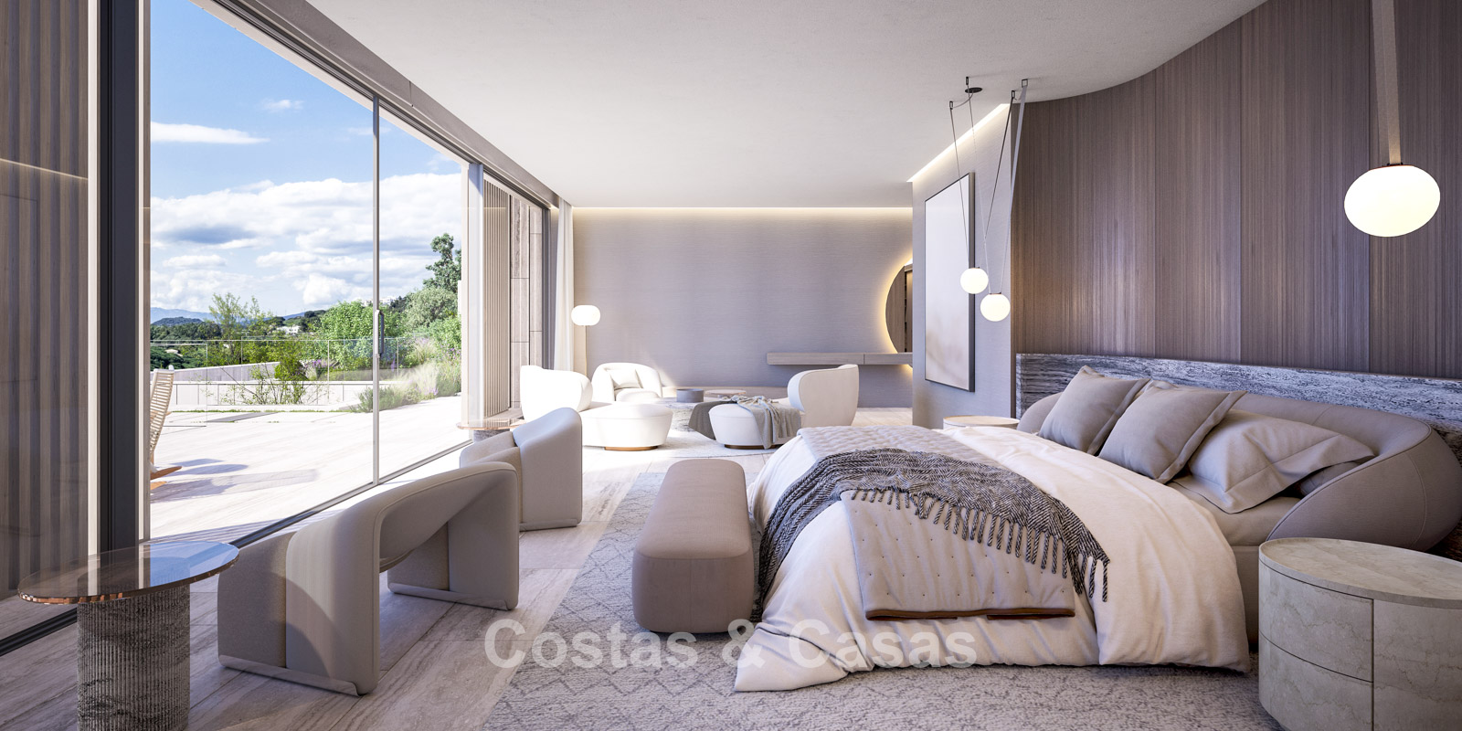 Vrijstaande villa met een ultra modernistische architectuur die serene minimalisme combineert met prestigieuze designaccenten.