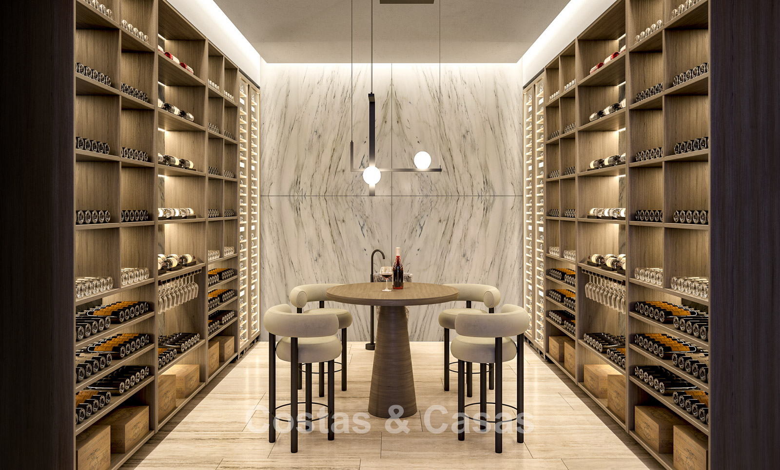 Op maat ontworpen wijnkelder.