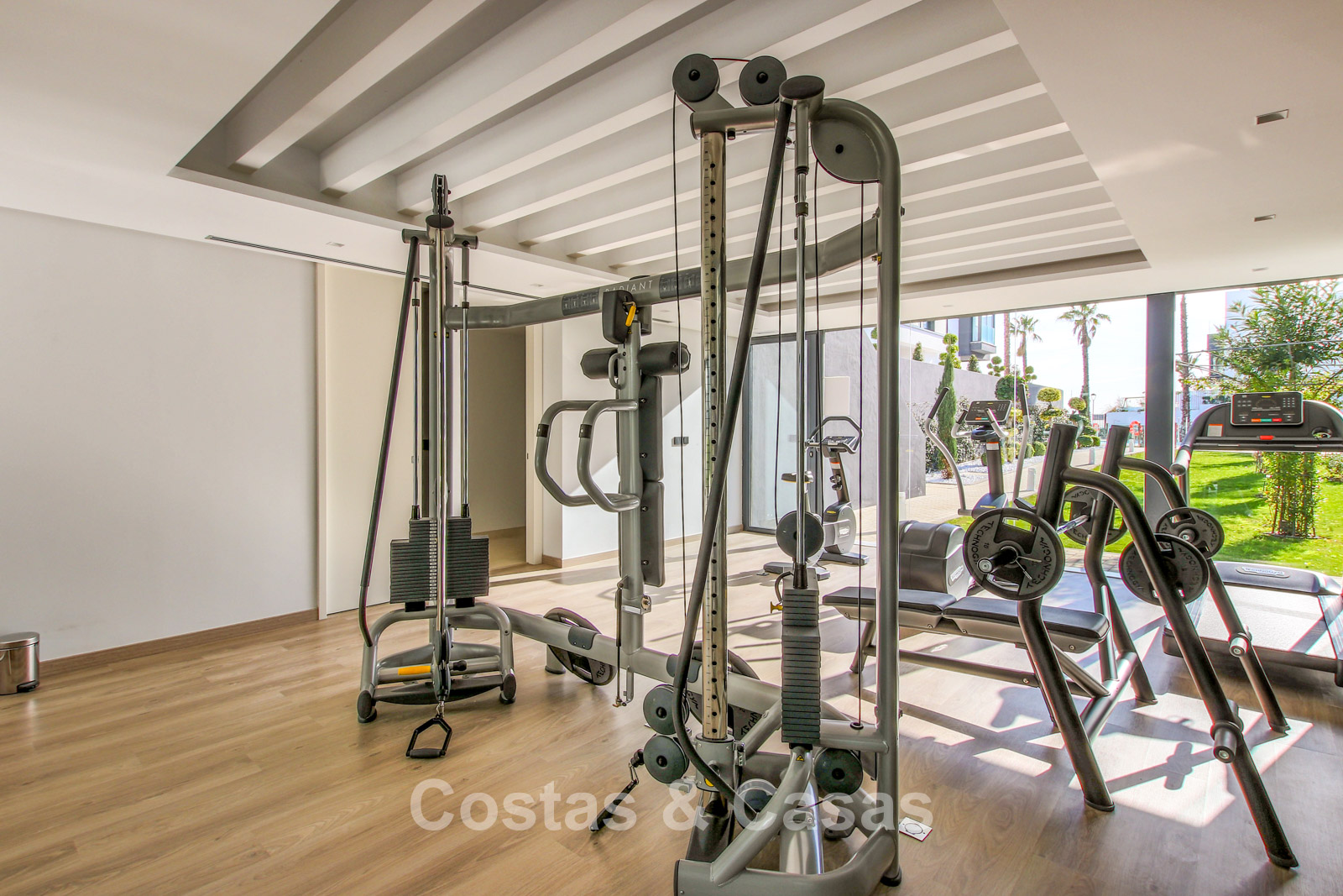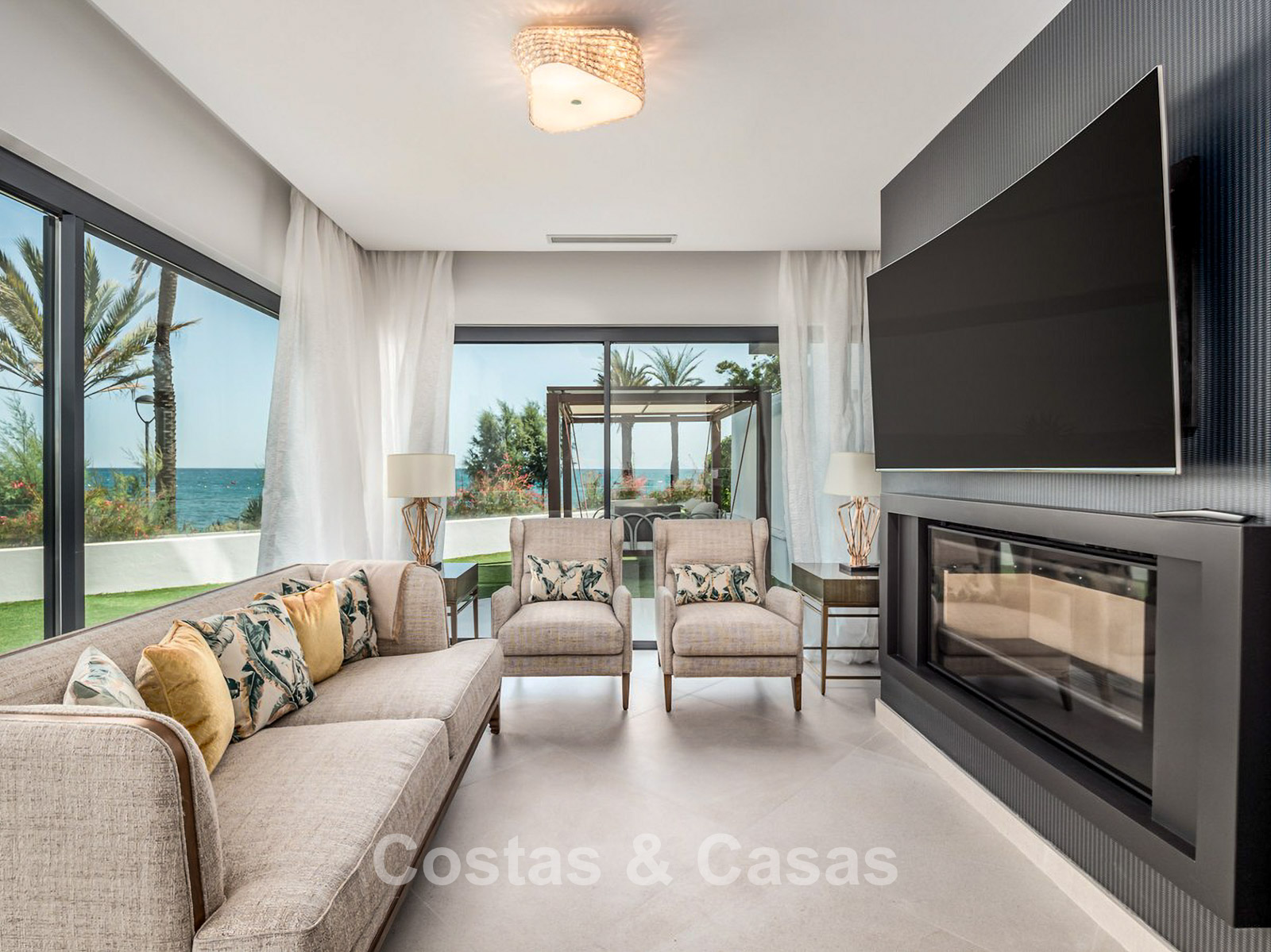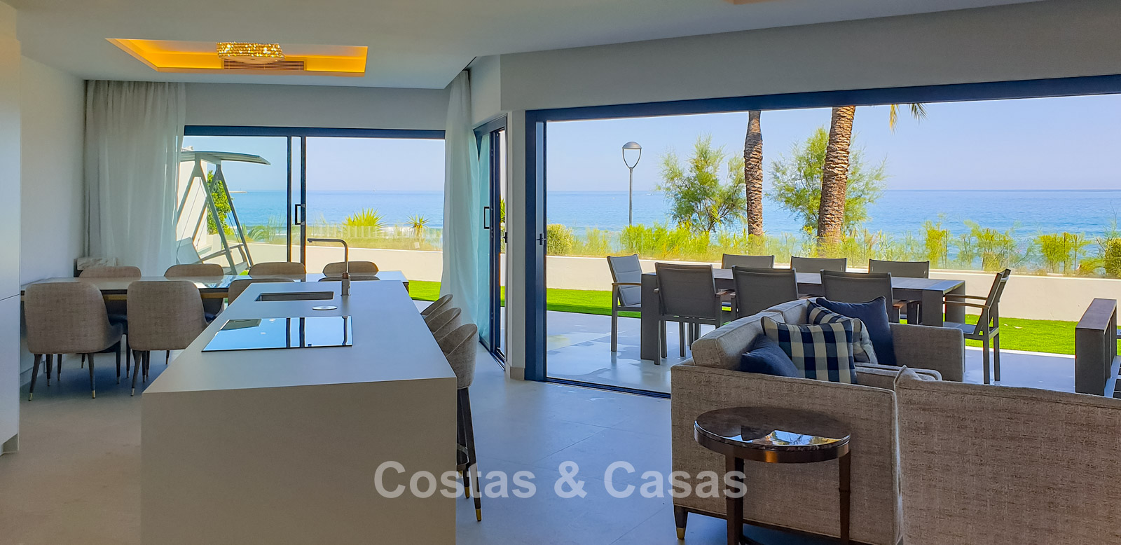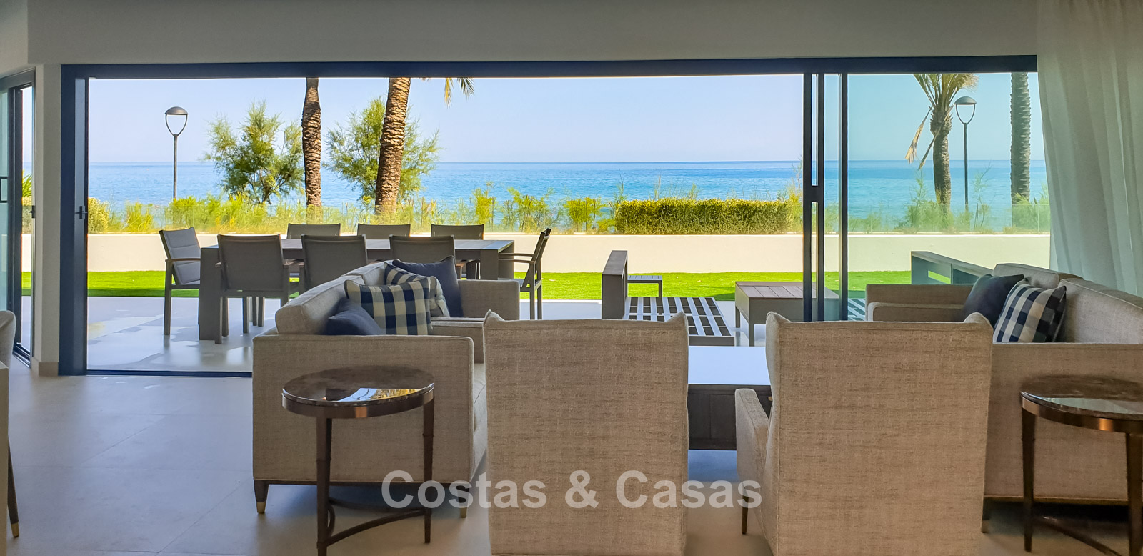 Instapklare, moderne, eerstelijnsstrand luxe rijwoning te koop met frontaal zeezicht, op wandelafstand van het centrum van Estepona