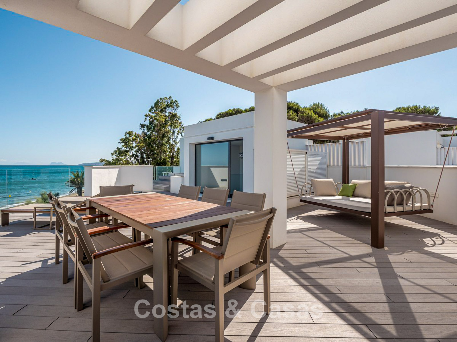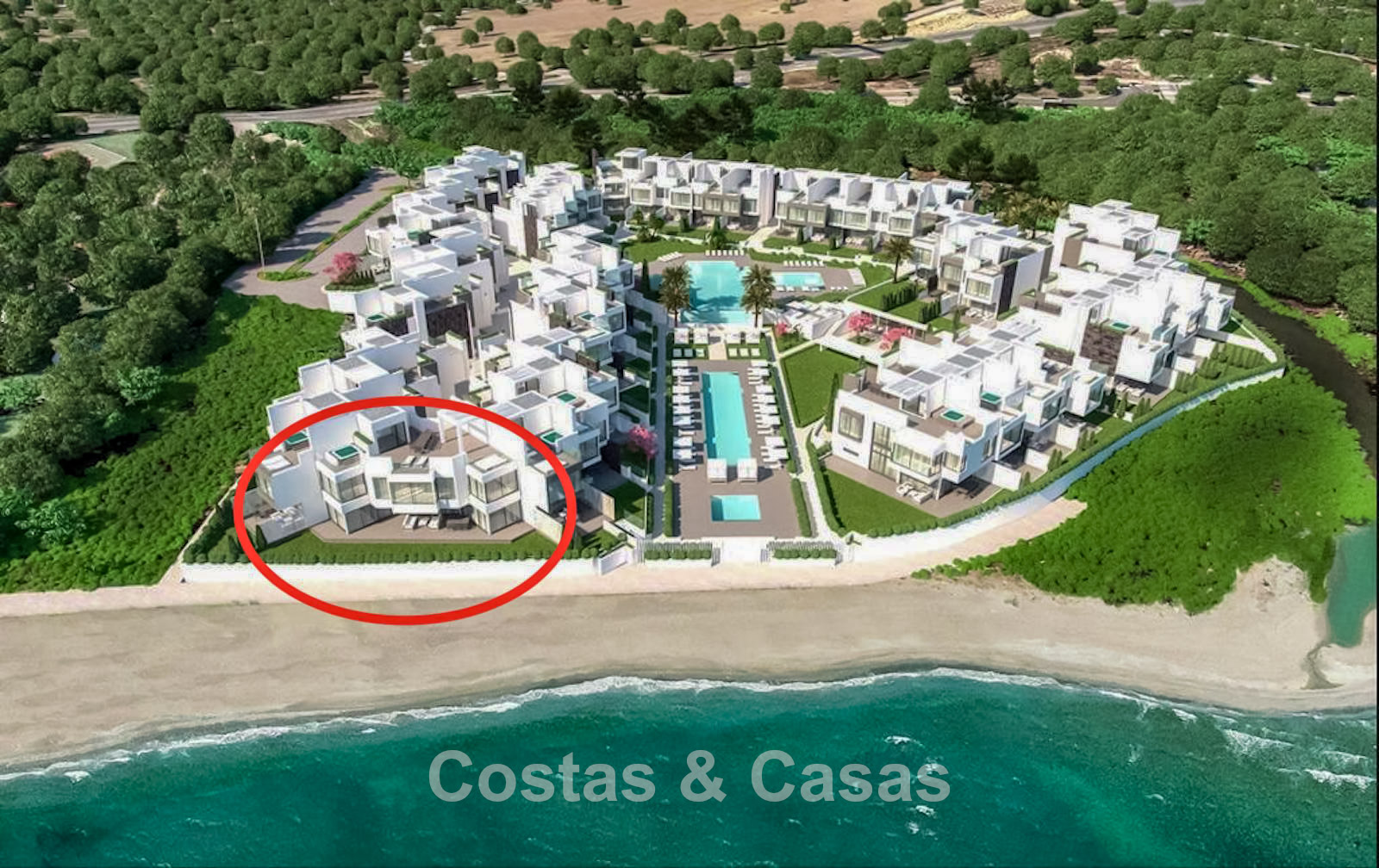 Eerstelijnsstrand, moderne, luxe rijwoning te koop met directe toegang tot het strand in Estepona