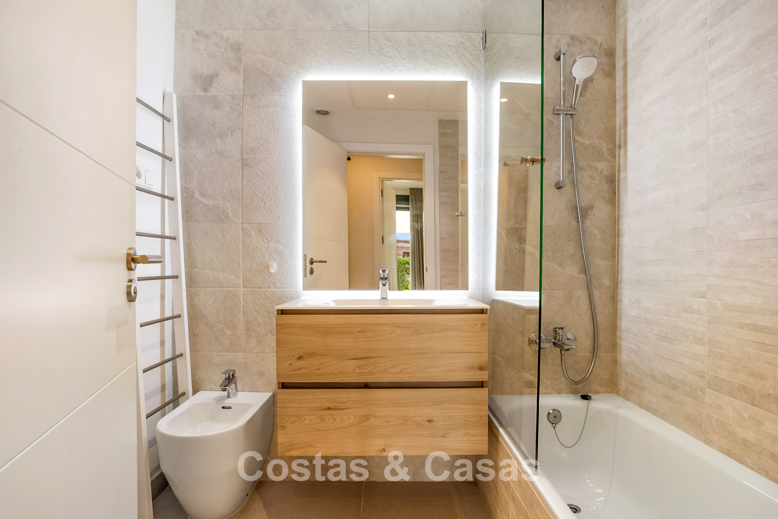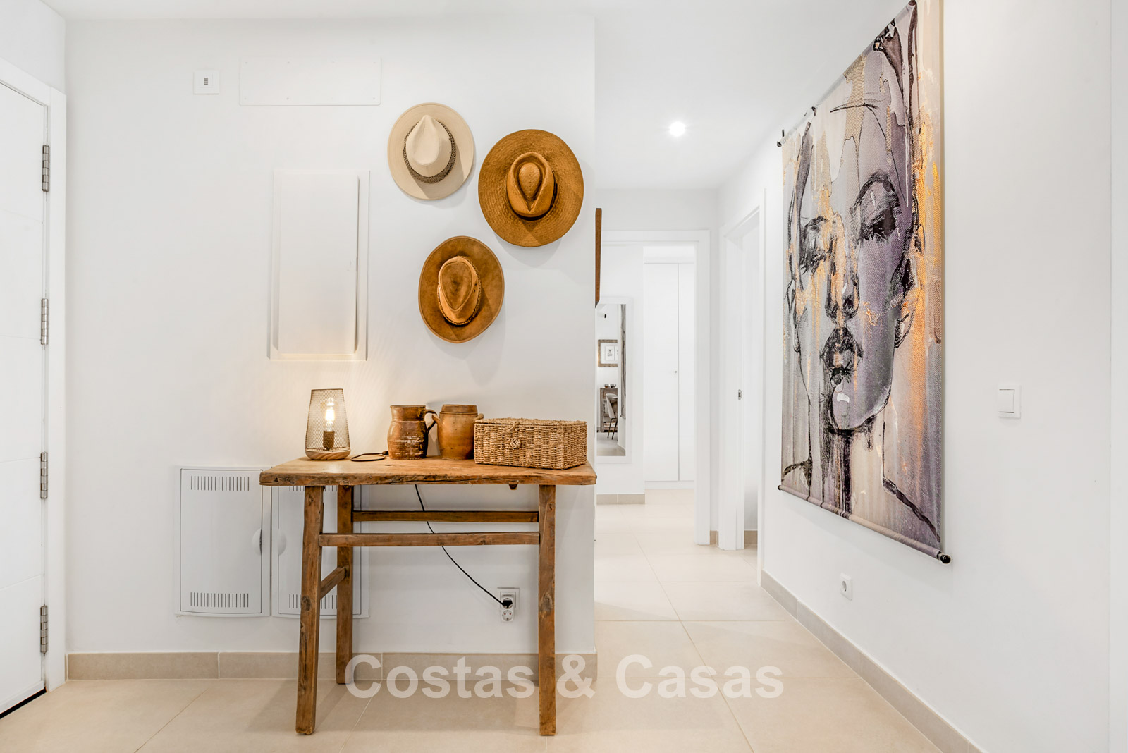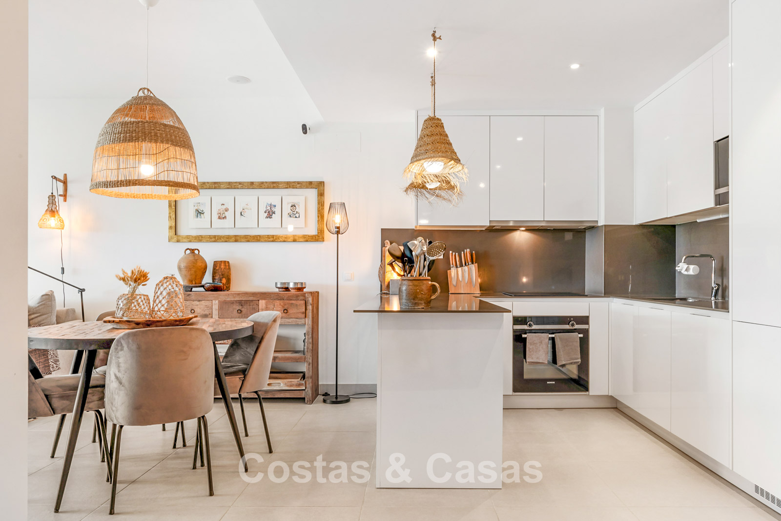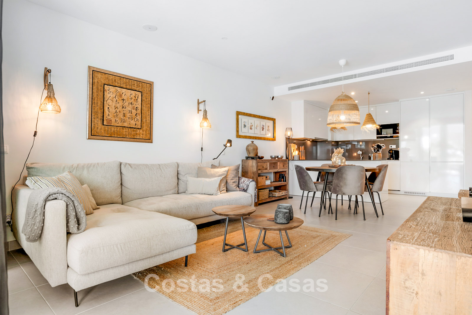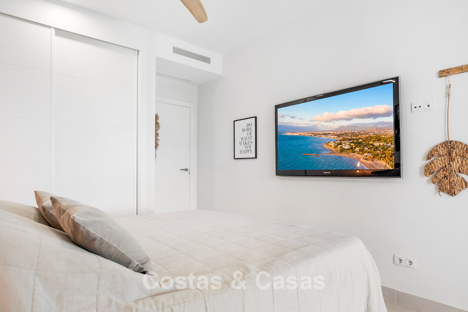 Gelijkvloers, modern appartement met ruime privétuin en deels zeezicht aan de golfbaan te koop in Estepona