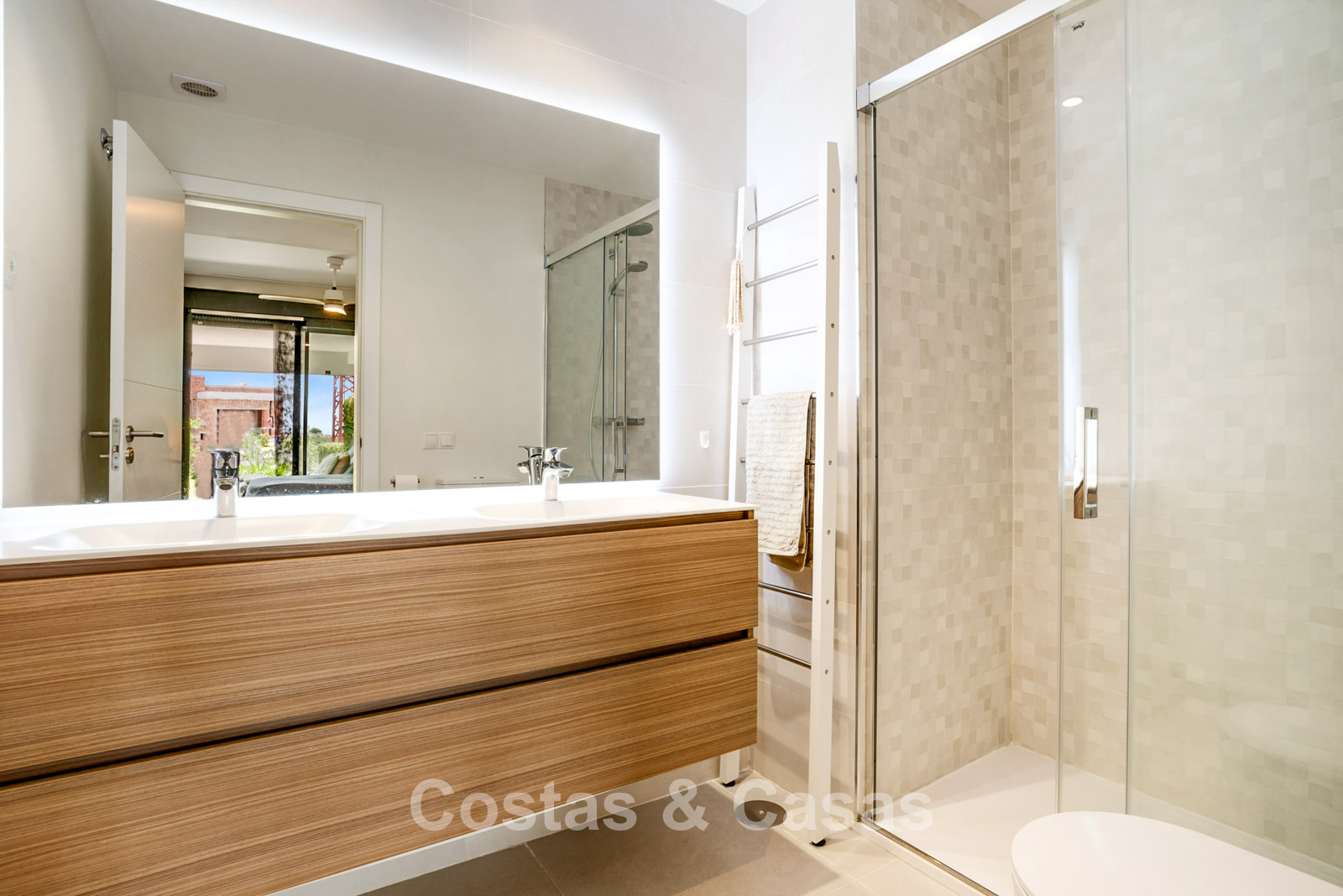 Gelijkvloers, modern appartement met ruime privétuin en deels zeezicht aan de golfbaan te koop in Estepona 789794
