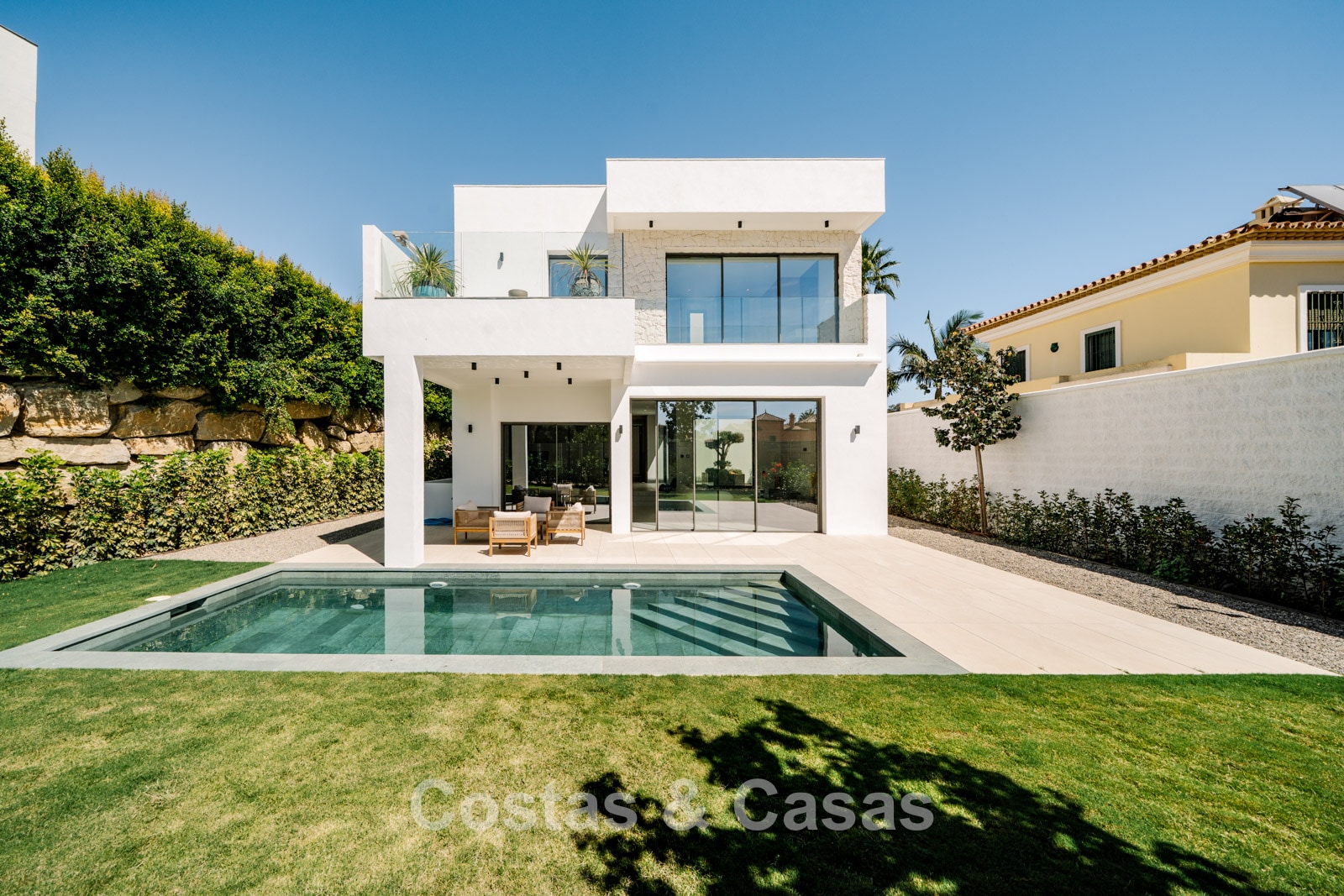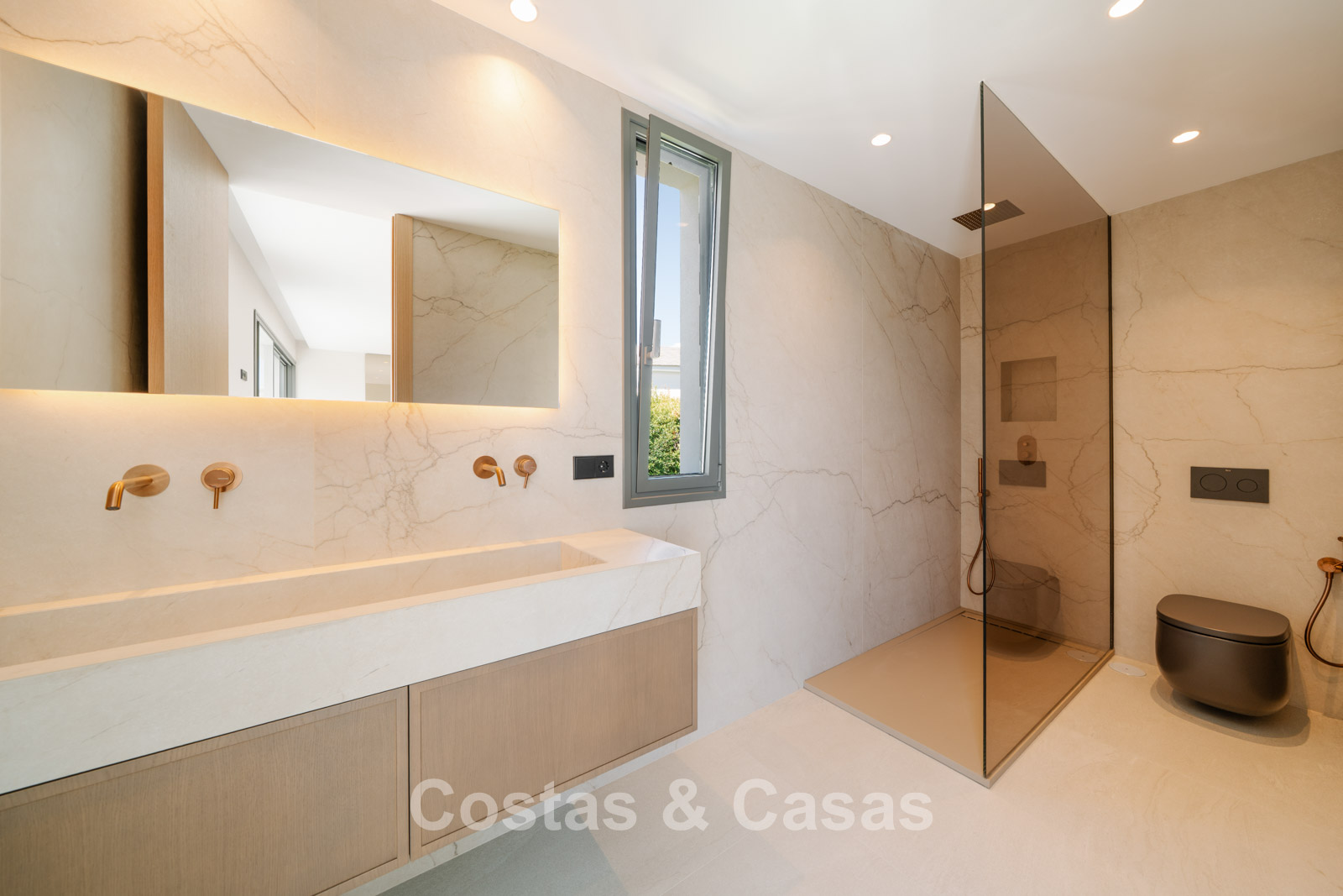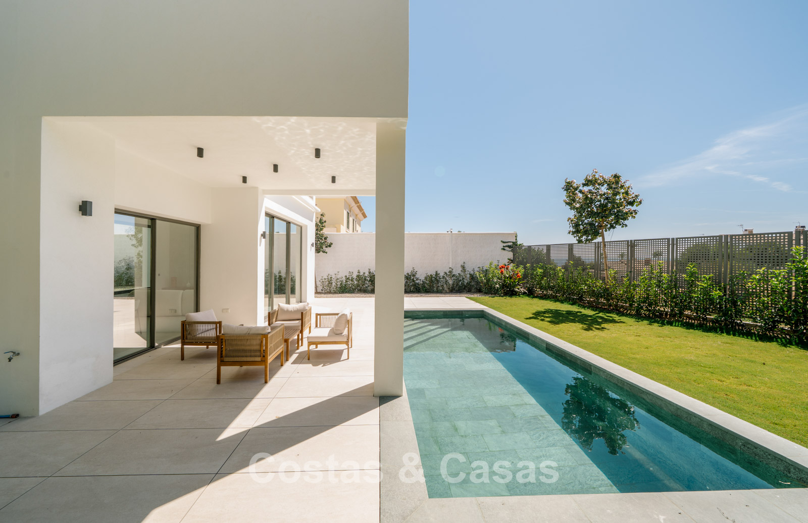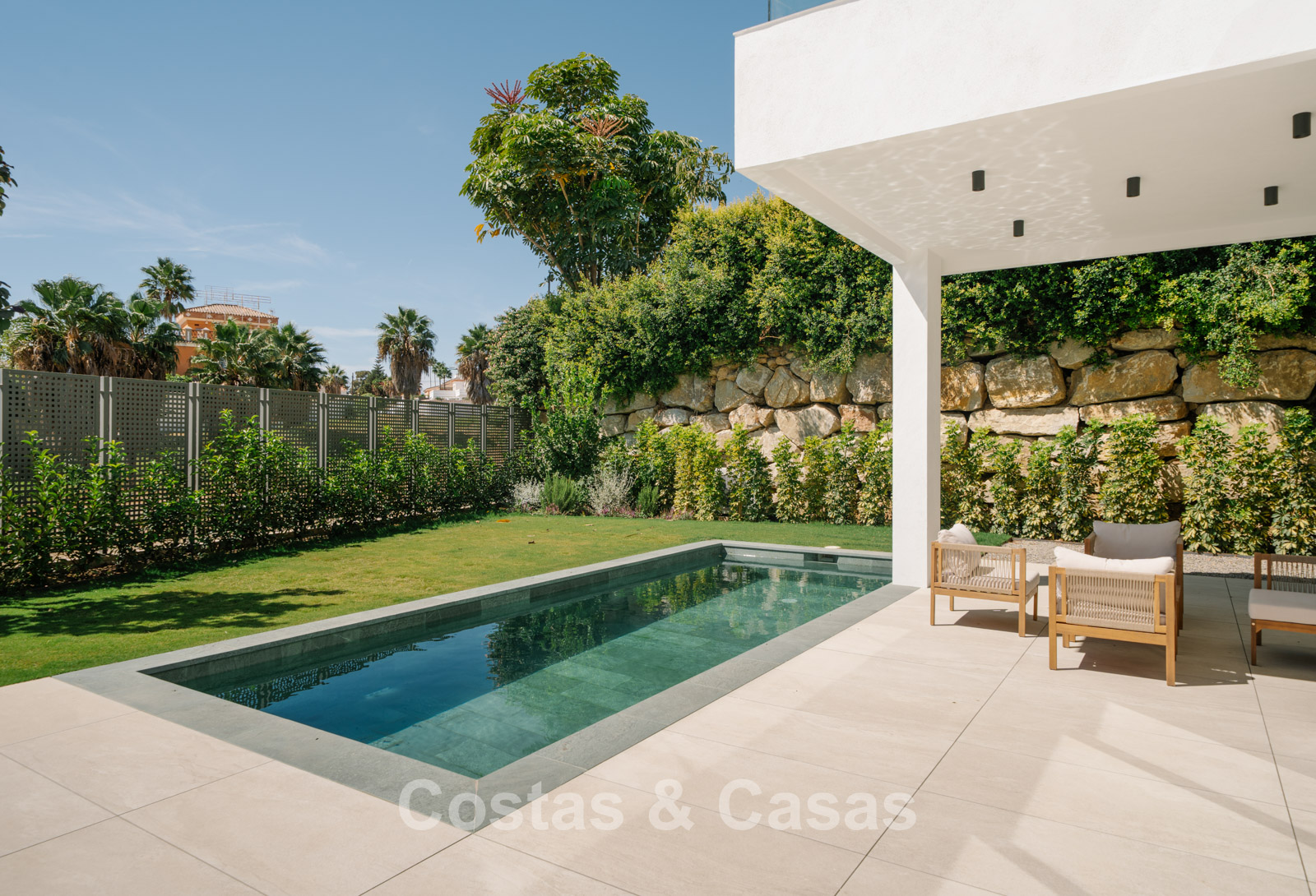 Instapklare nieuwbouwvilla met contemporaine bouwstijl te koop met zeezicht en op loopafstand van het strand in Estepona 786268
