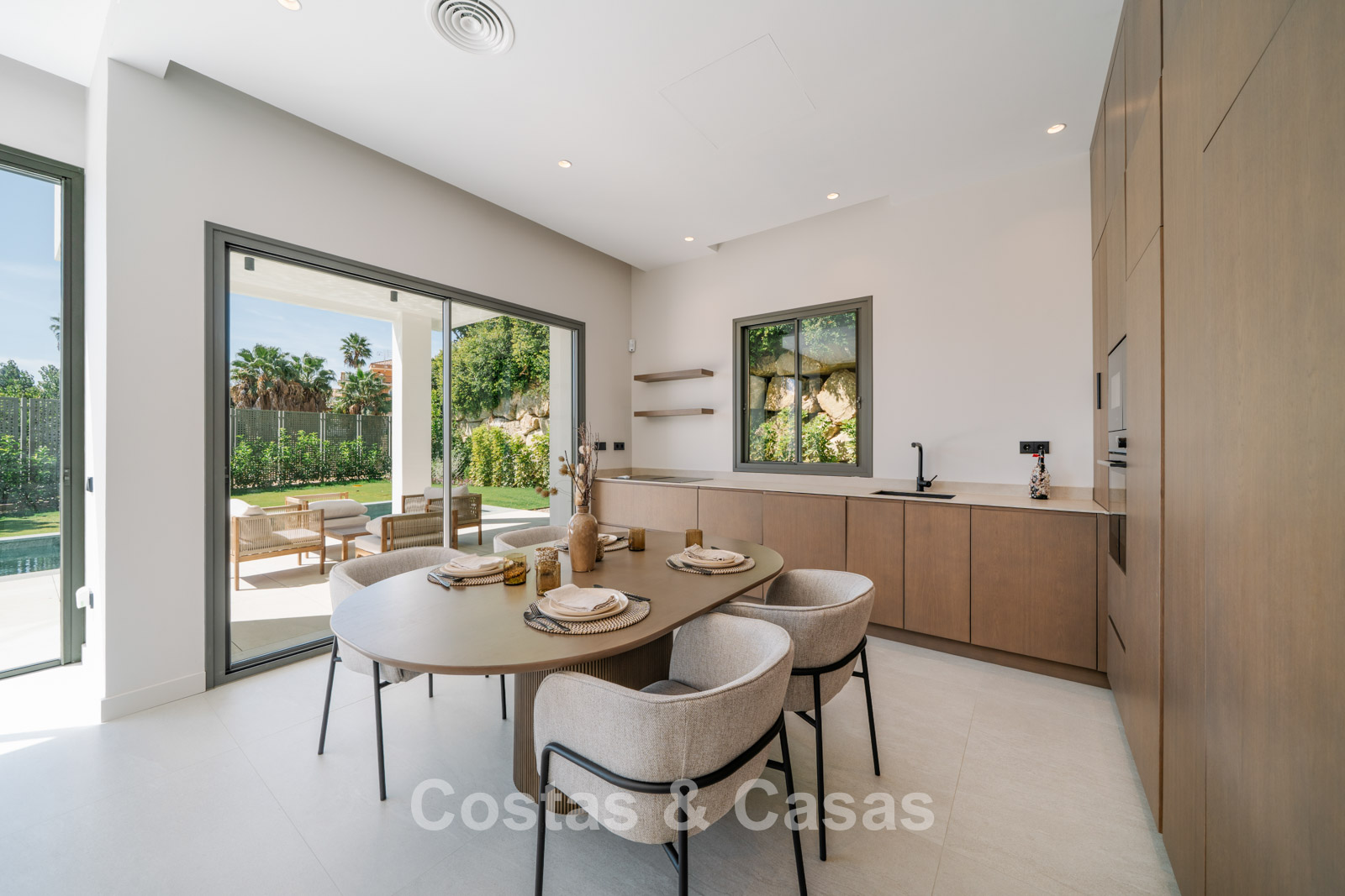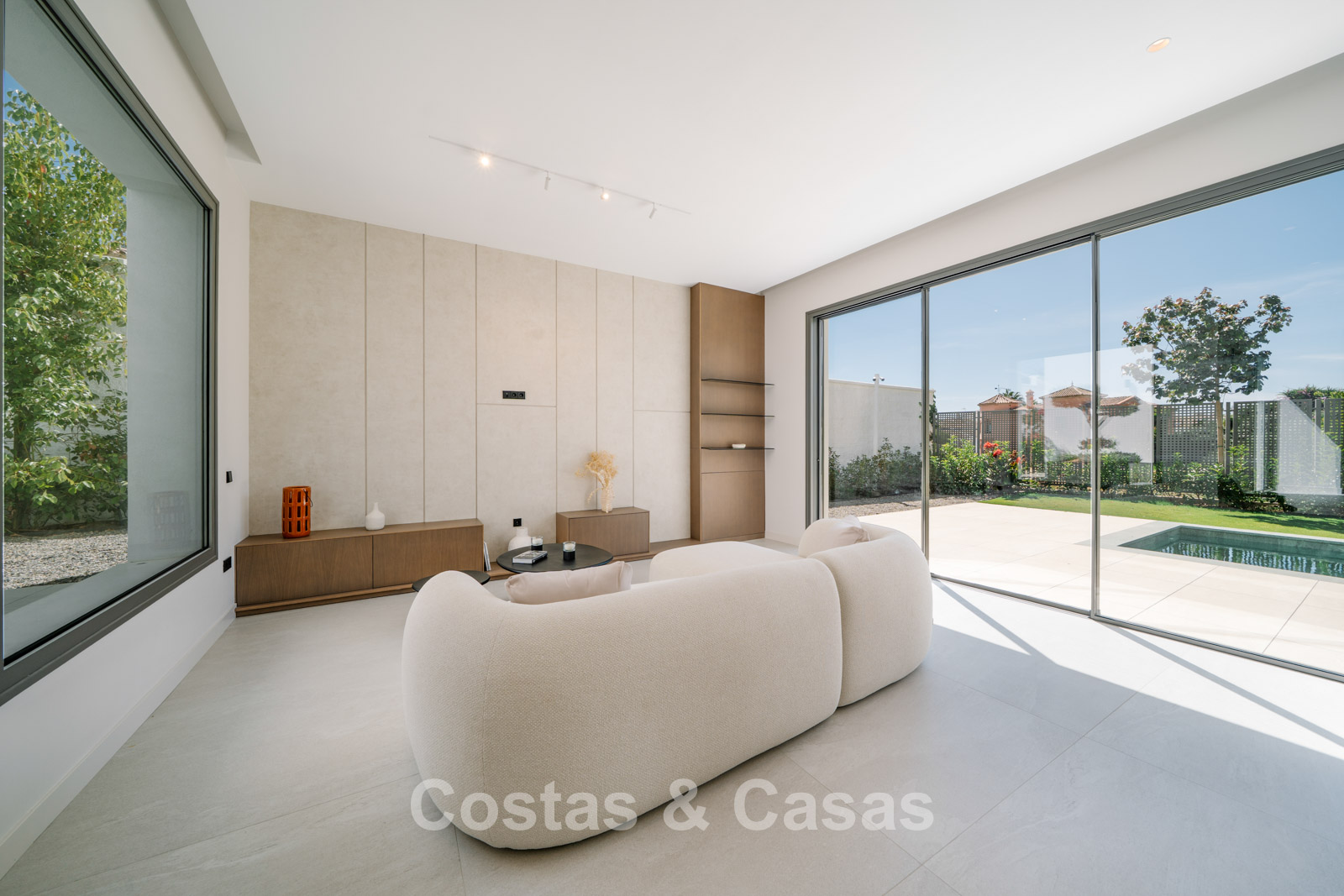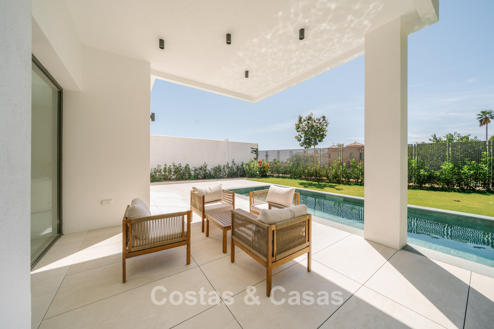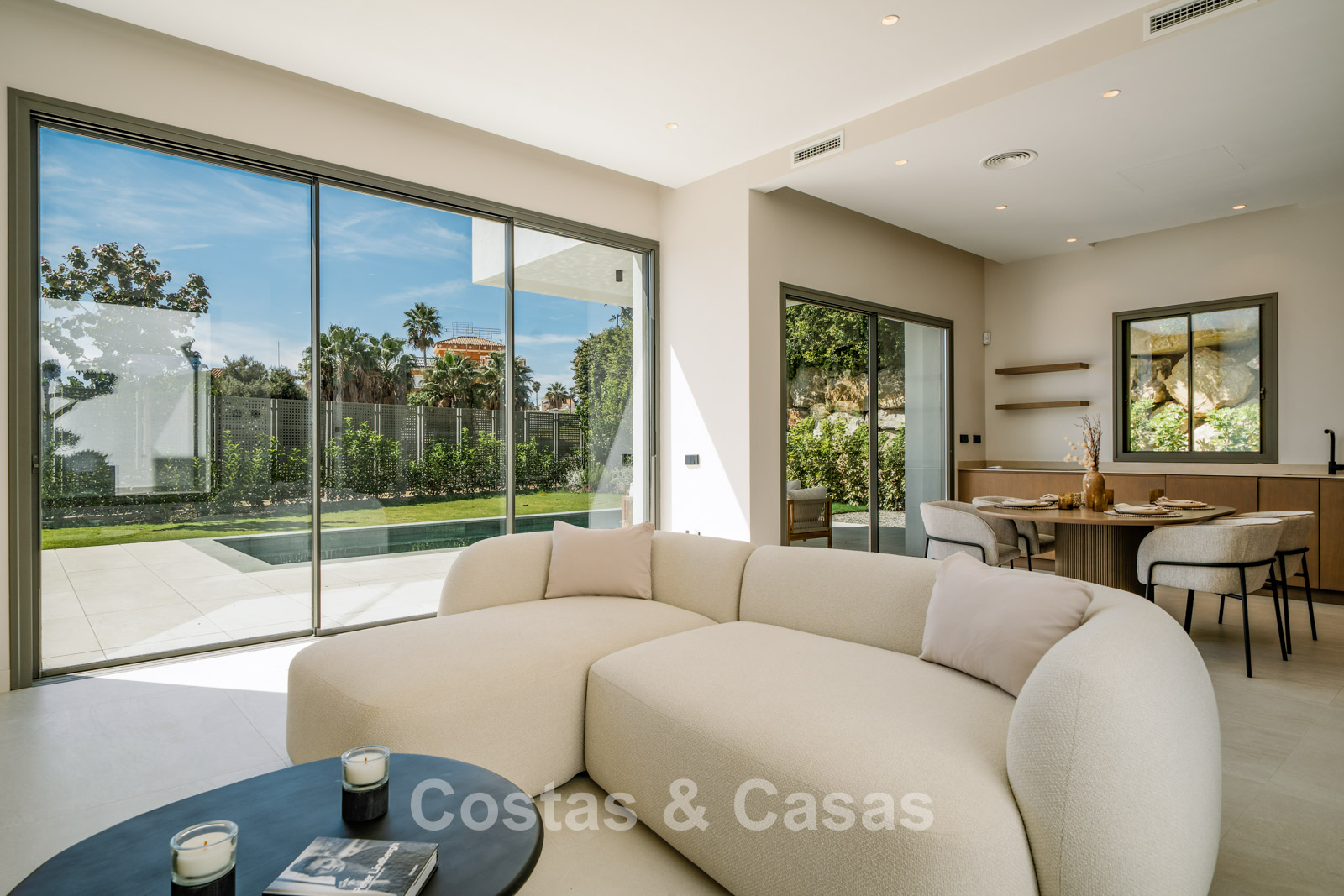 Instapklare nieuwbouwvilla met contemporaine bouwstijl te koop met zeezicht en op loopafstand van het strand in Estepona 786268