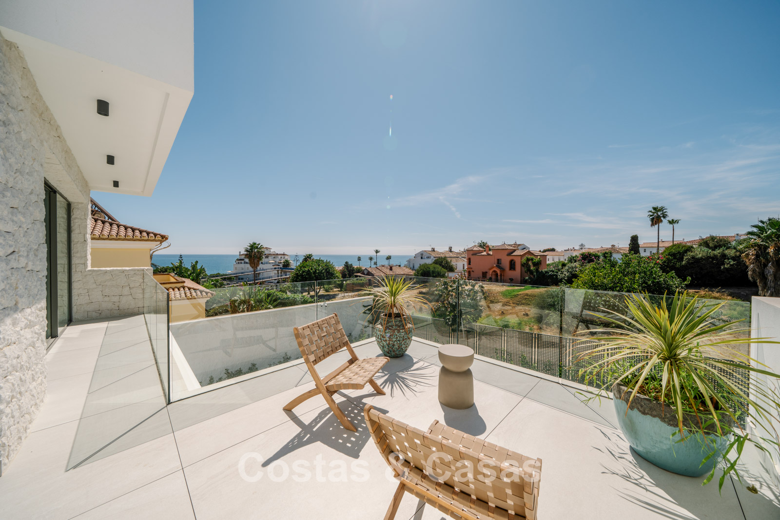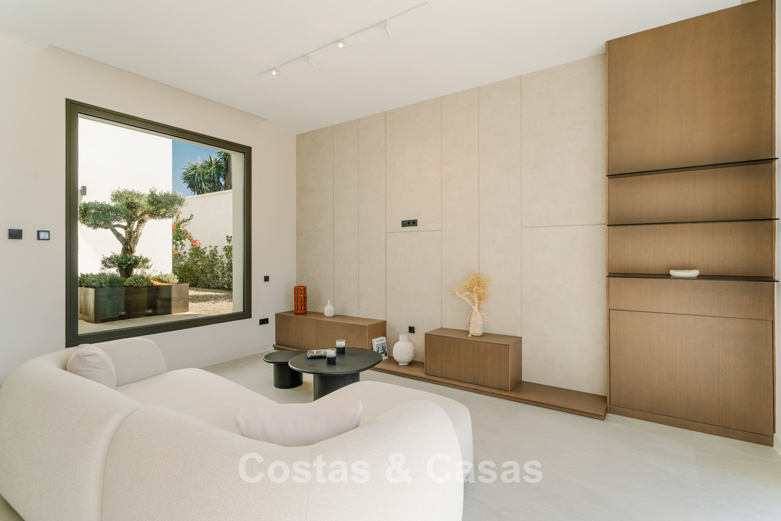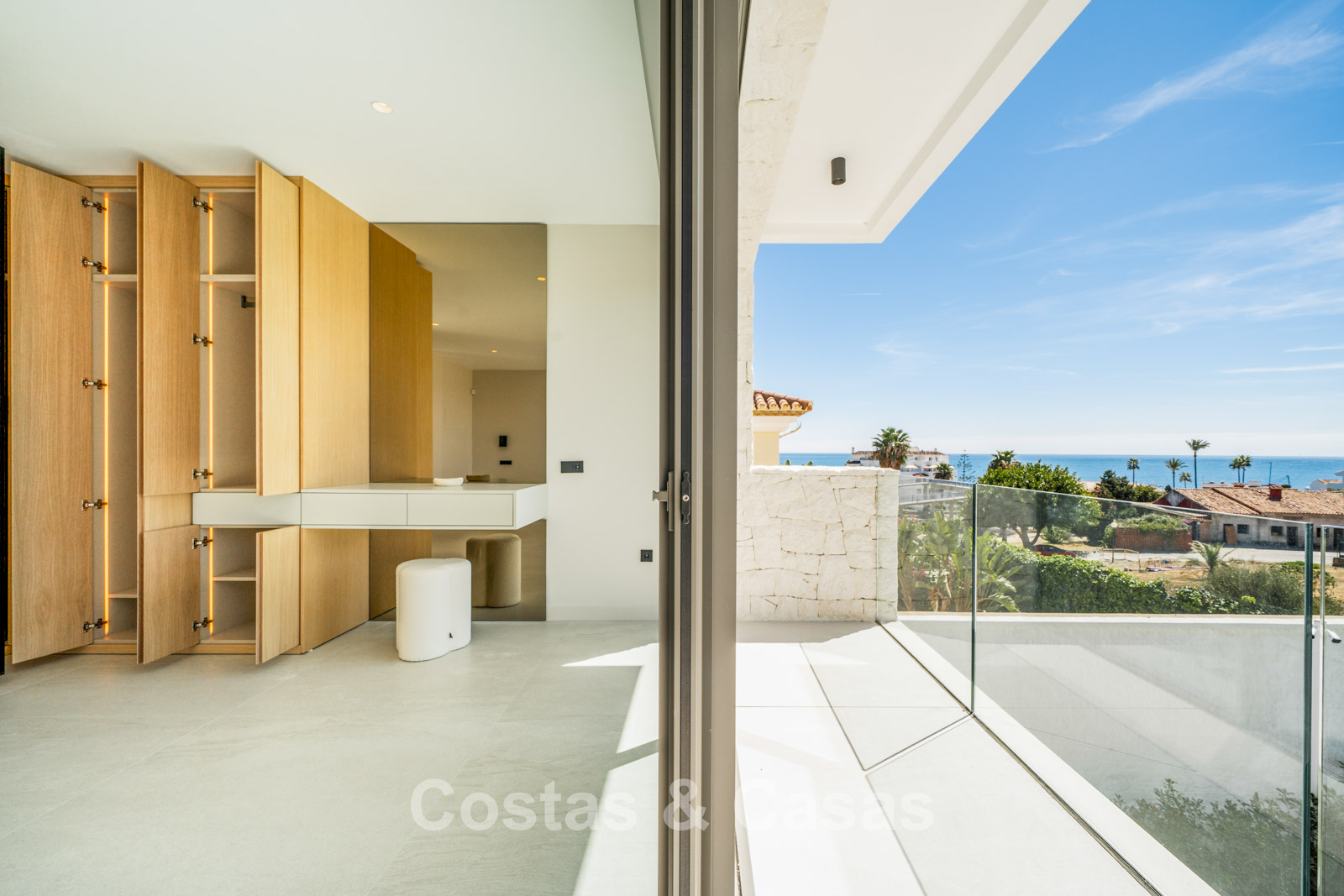 Instapklare nieuwbouwvilla met contemporaine bouwstijl te koop met zeezicht en op loopafstand van het strand in Estepona