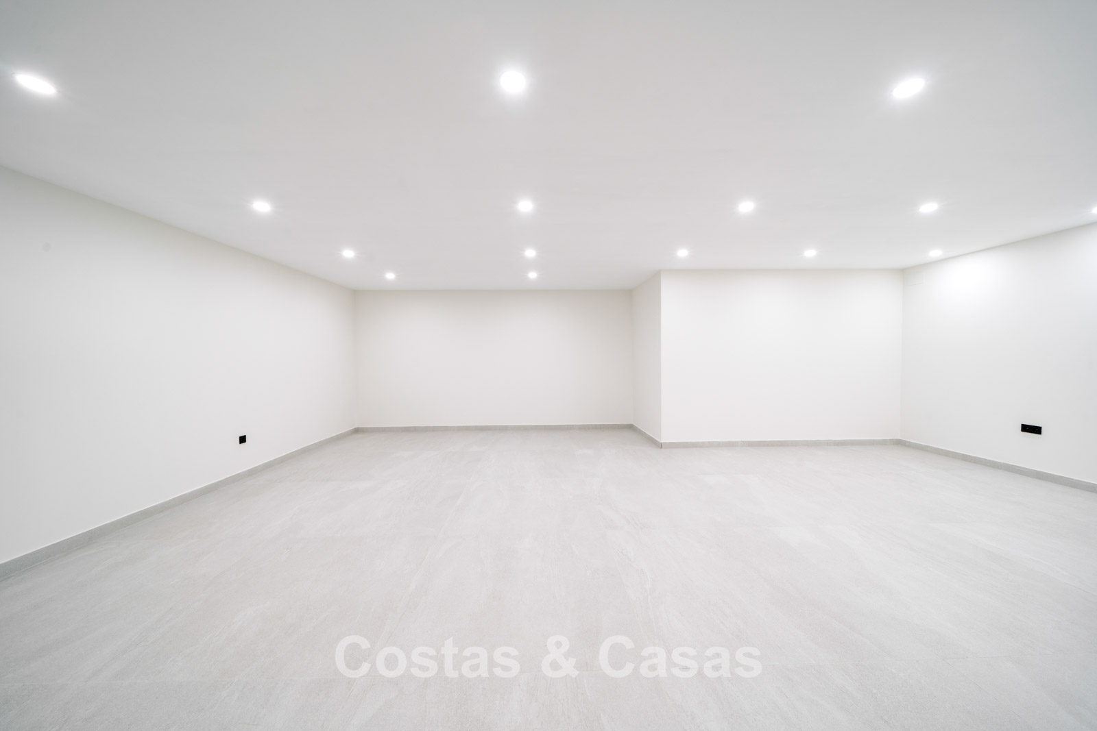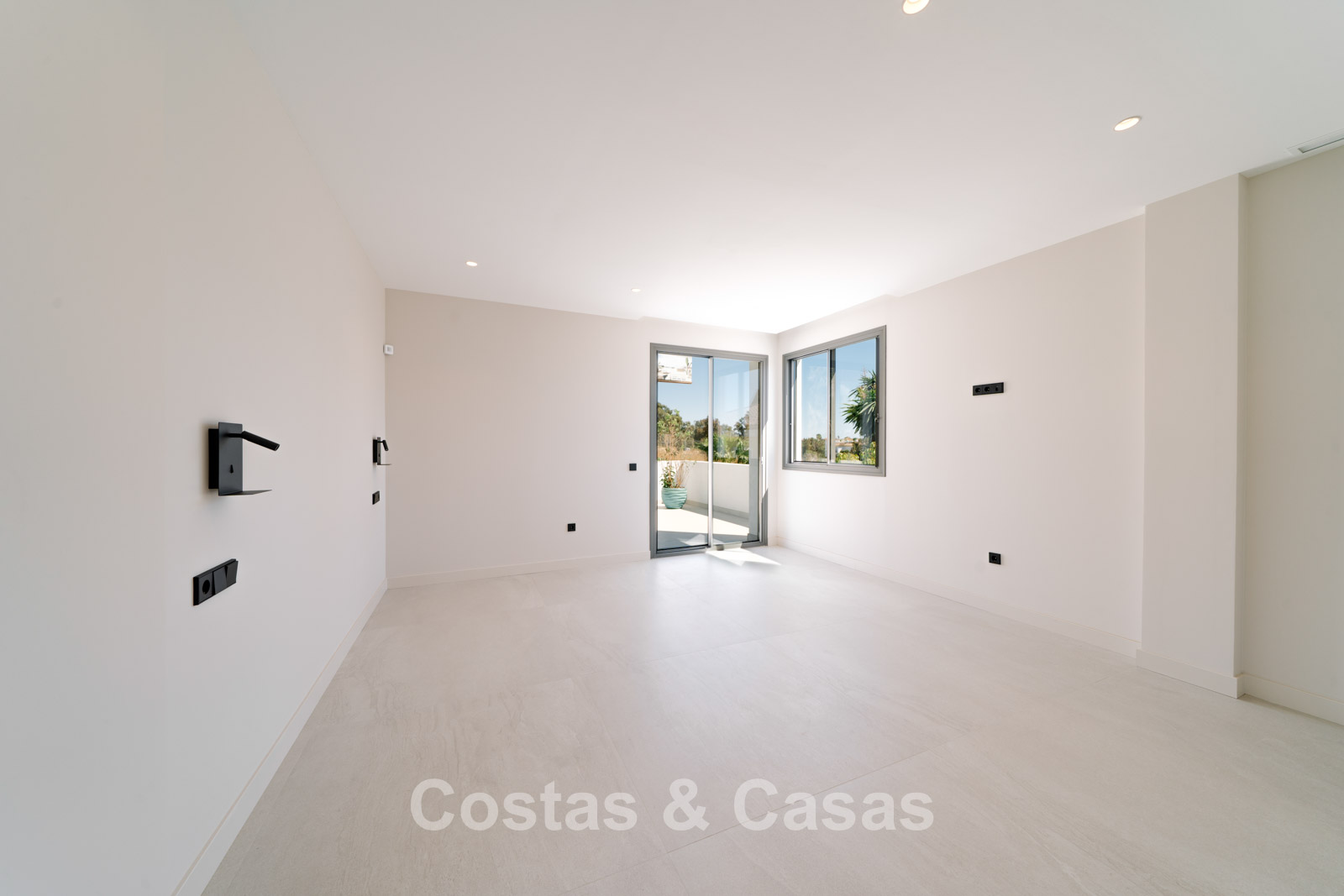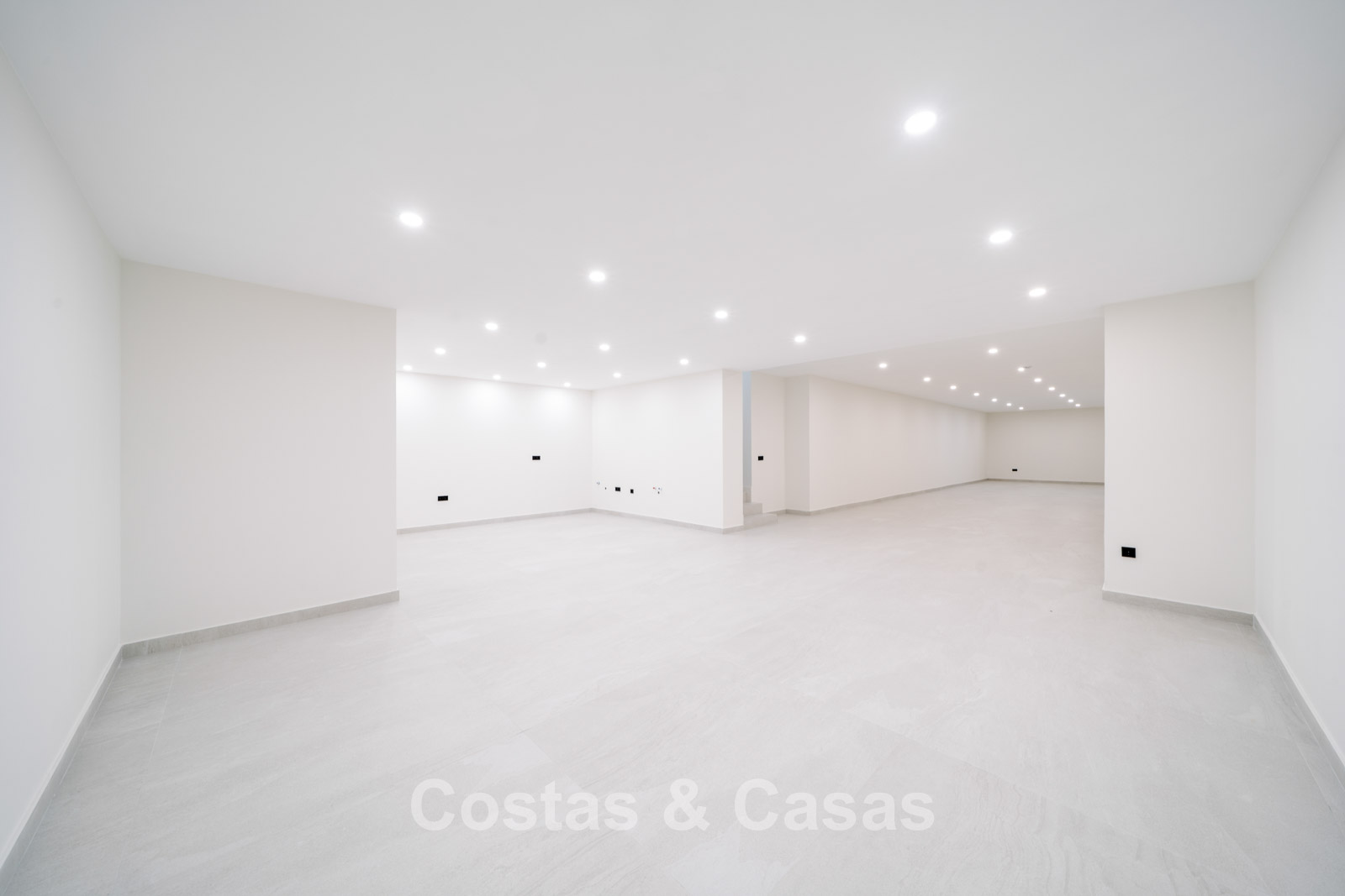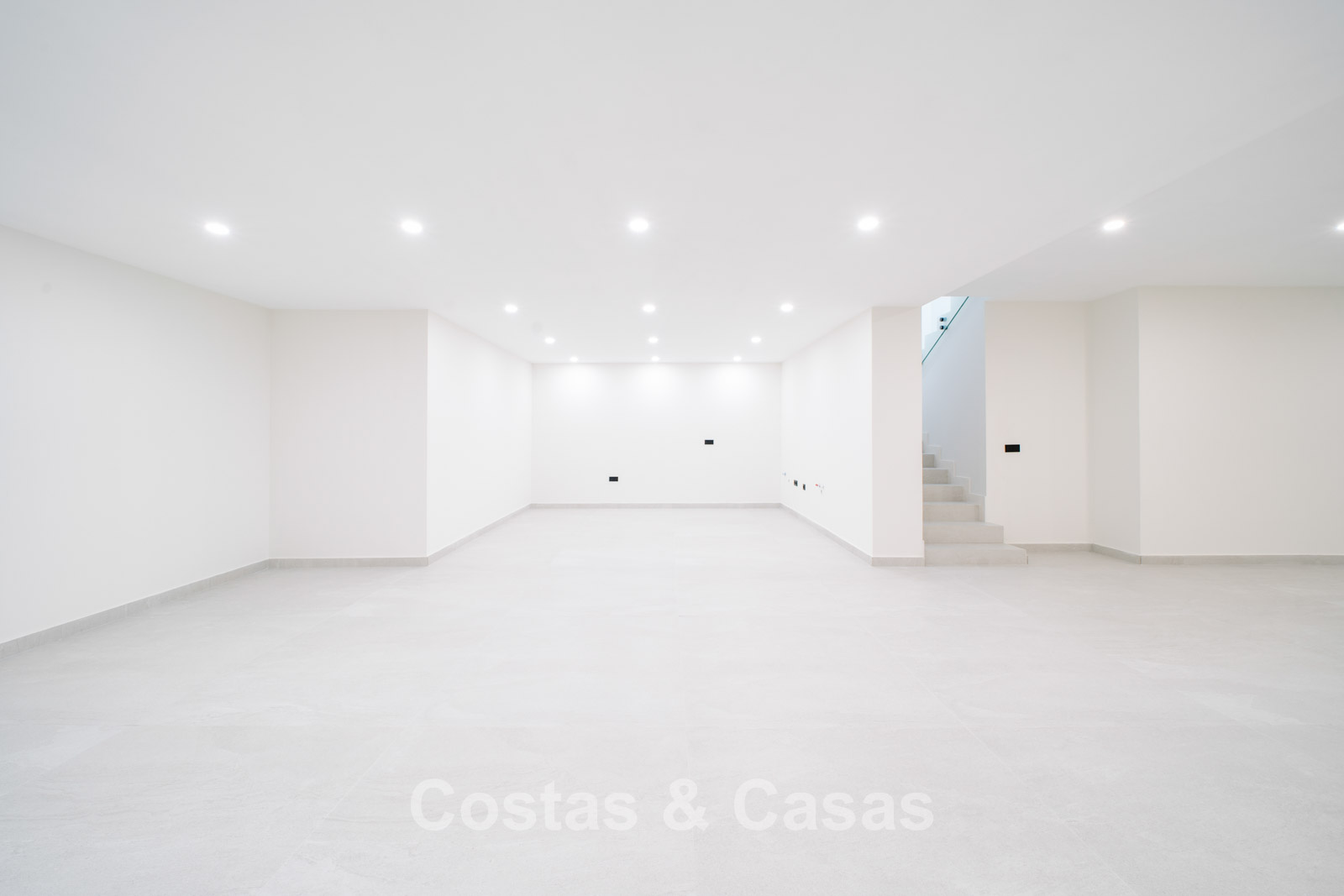 Instapklare nieuwbouwvilla met contemporaine bouwstijl te koop met zeezicht en op loopafstand van het strand in Estepona