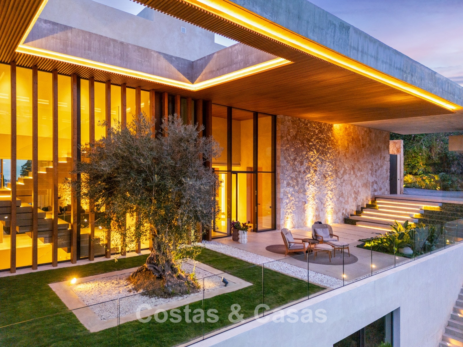 De moderne architectuur valt op door haar royale openheid en de focus op pure eenvoud en verfijnde functionaliteit.