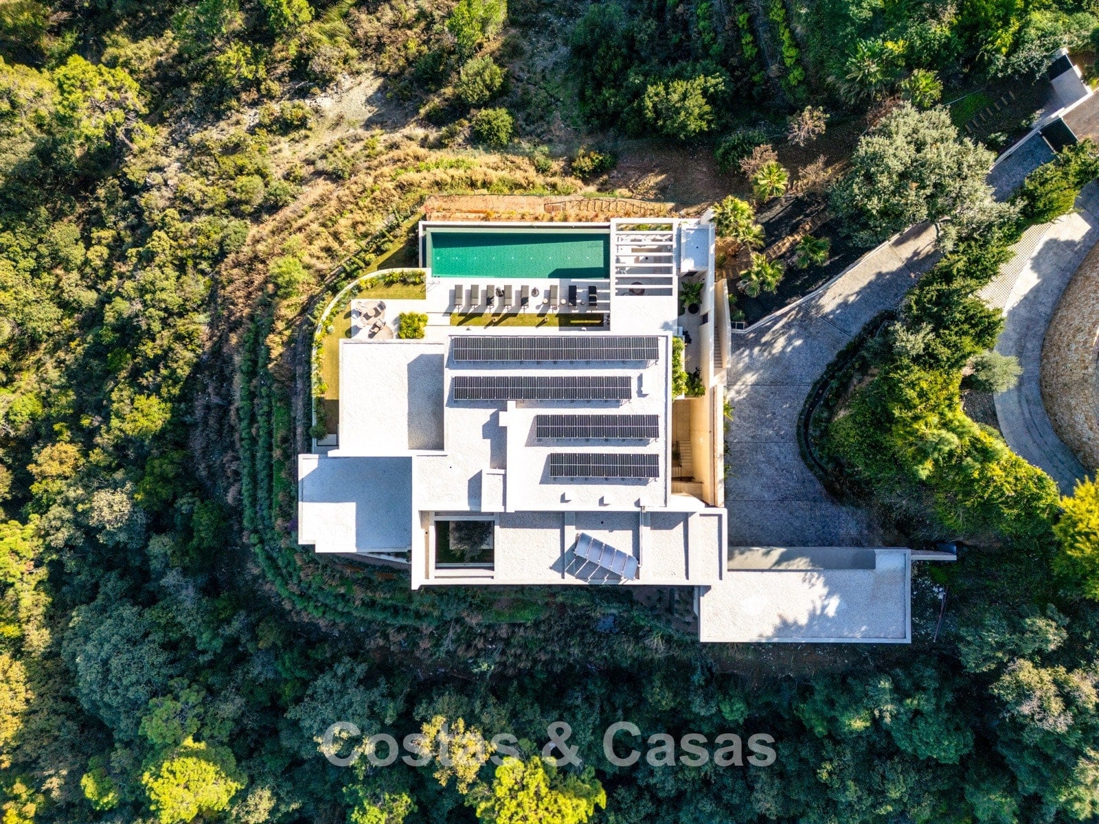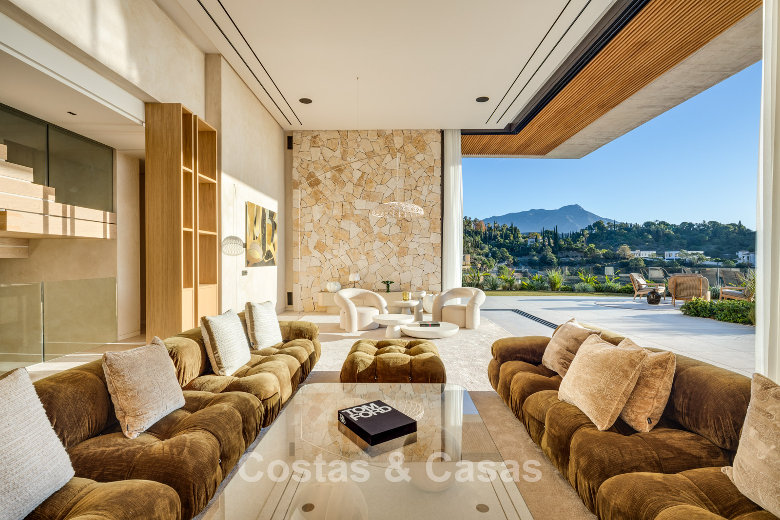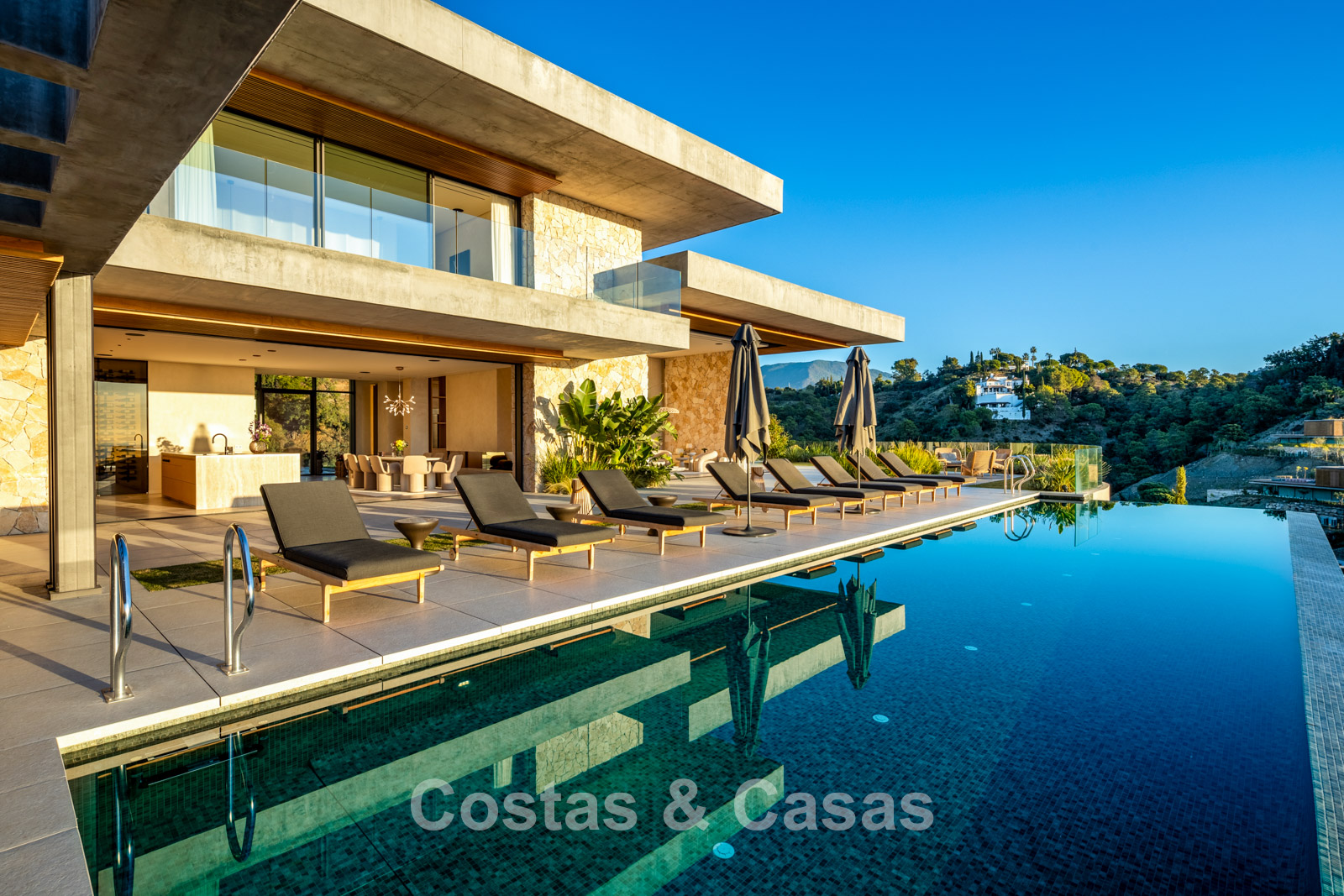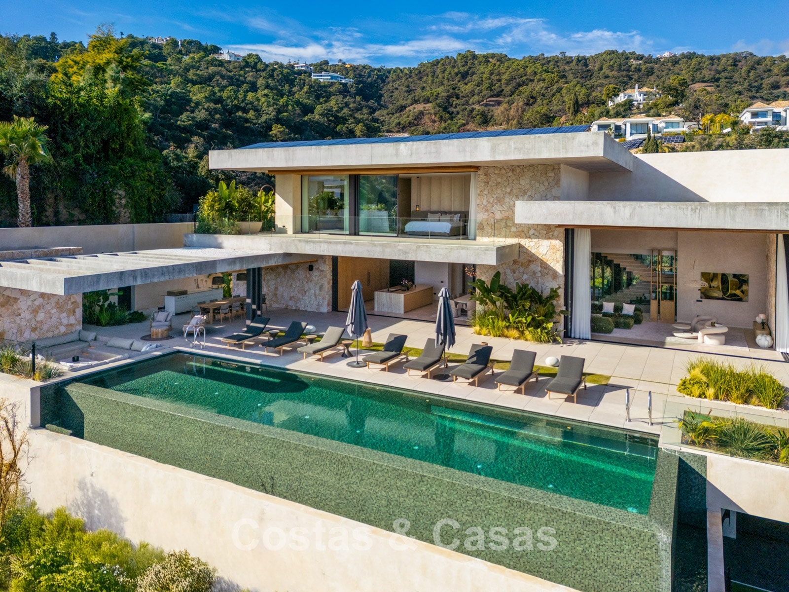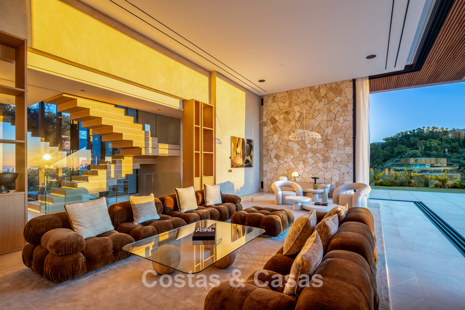 De villa combineert een high-end minimalistisch design met warme, natuurlijke accenten en creëert zo een luxueuze leefomgeving die naadloos aansluit bij de omringende natuur.