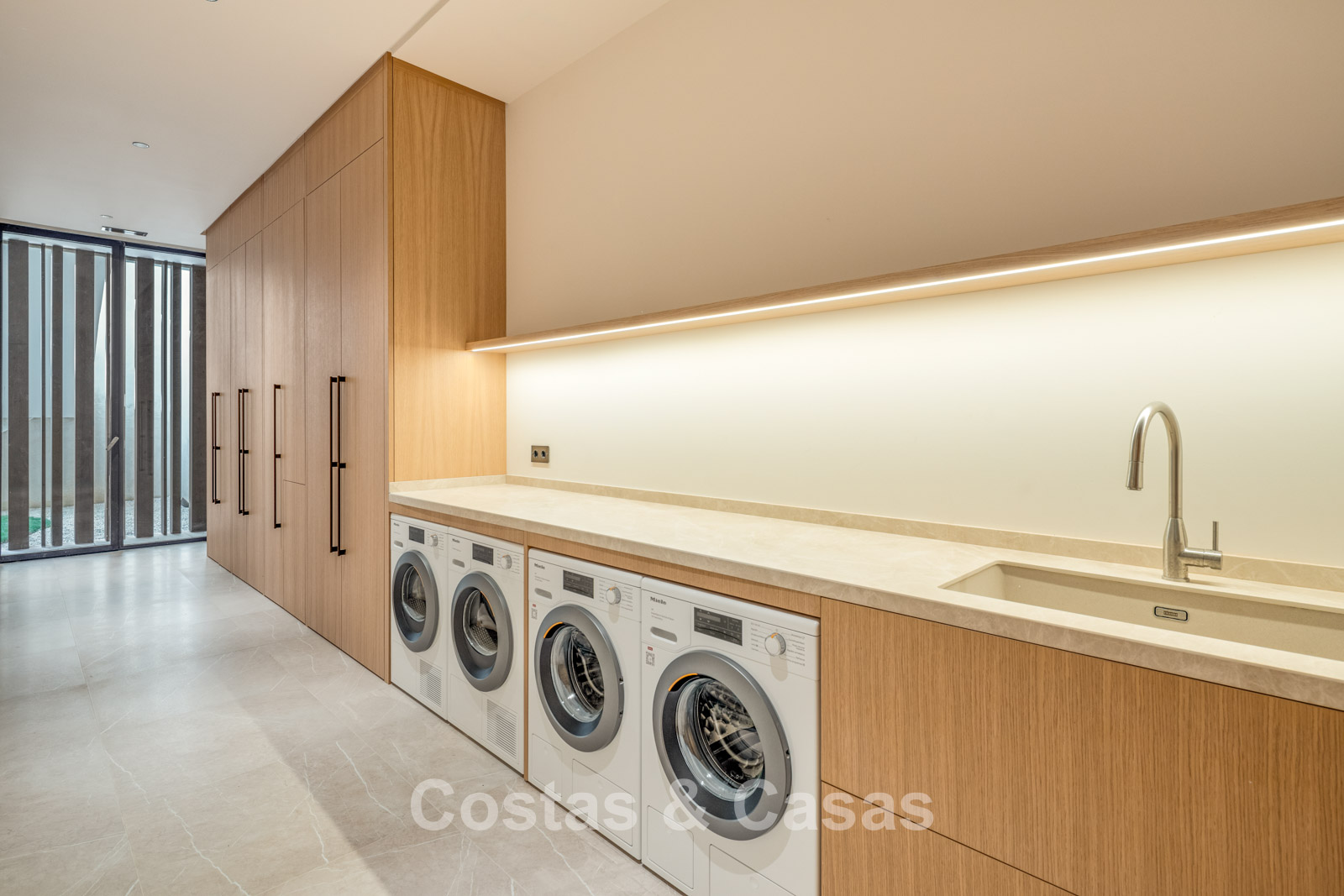 Wasruimte, geëquipeerd met Miele toestellen.