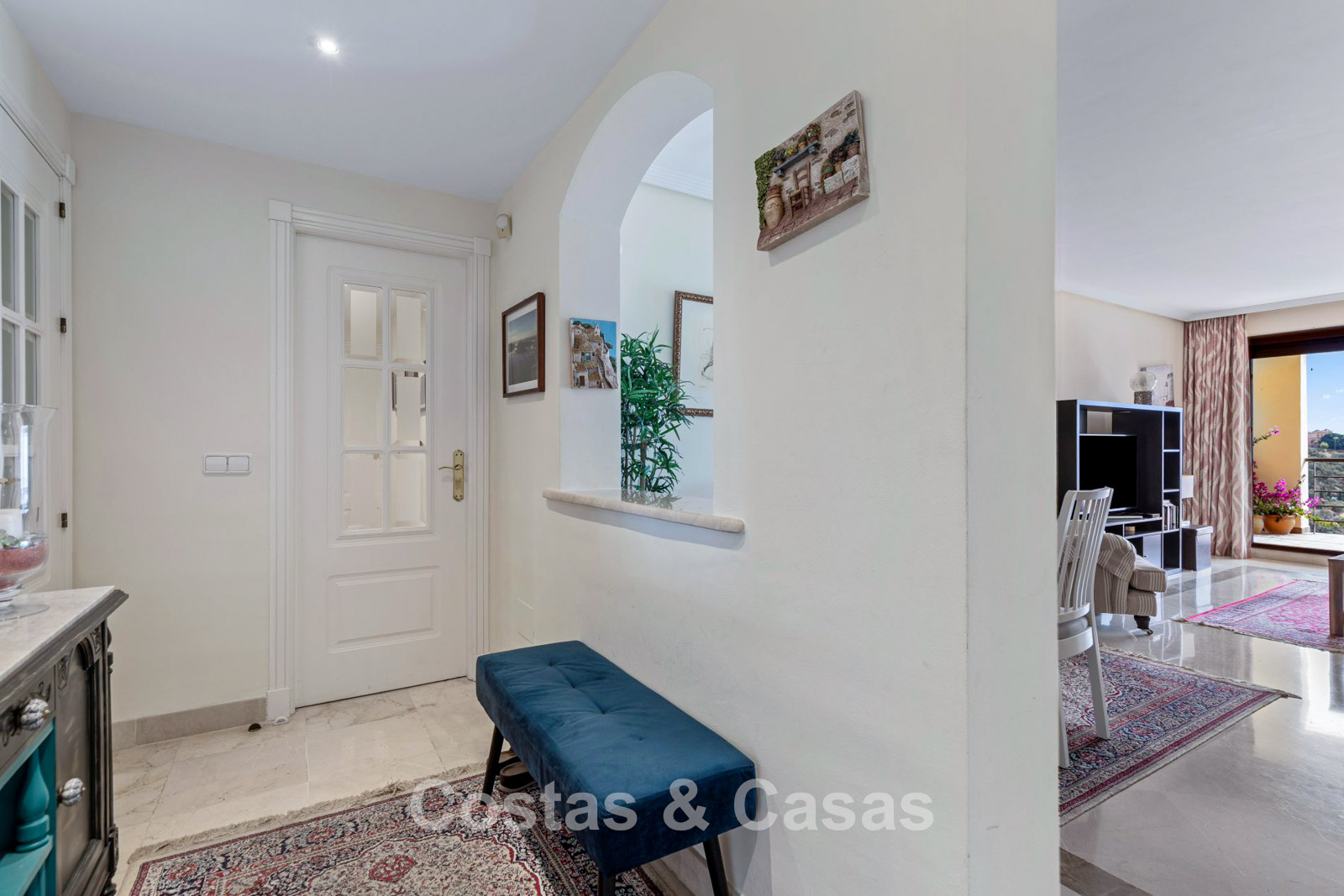 Het charmante dorp Benahavís, bekend om zijn authentieke Andalusische stijl, kronkelende straatjes, sfeervolle tapasbars en enkele van de beste eetgelegenheden van de Costa del Sol, ligt op slechts 5 minuten rijden.