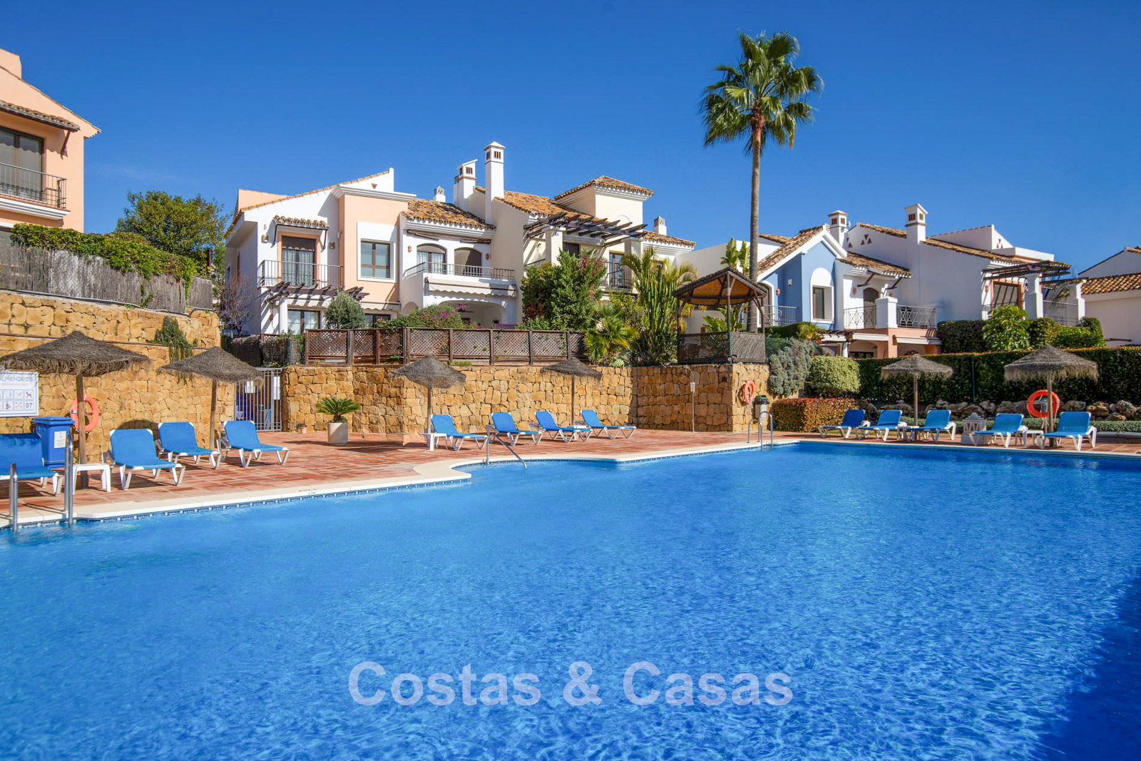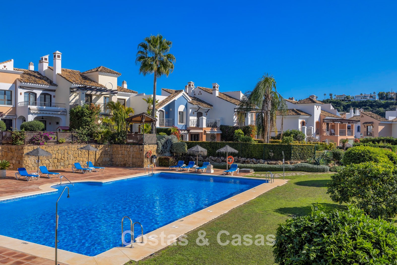 Bewoners van het kleinschalige complex kunnen genieten van twee gemeenschappelijke zwembaden, omringd door fraai aangelegde en uitstekend onderhouden tuinen.