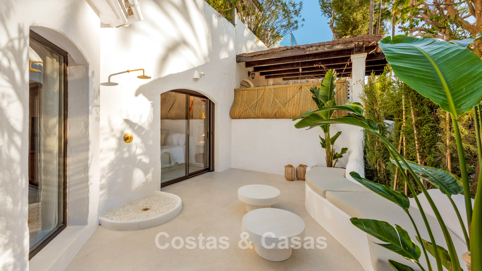 Het interieurdesign combineert hedendaagse, mediterrane elegantie met warme, natuurlijke materialen en organische vormen, waardoor luxe resortstijl ontstaat.