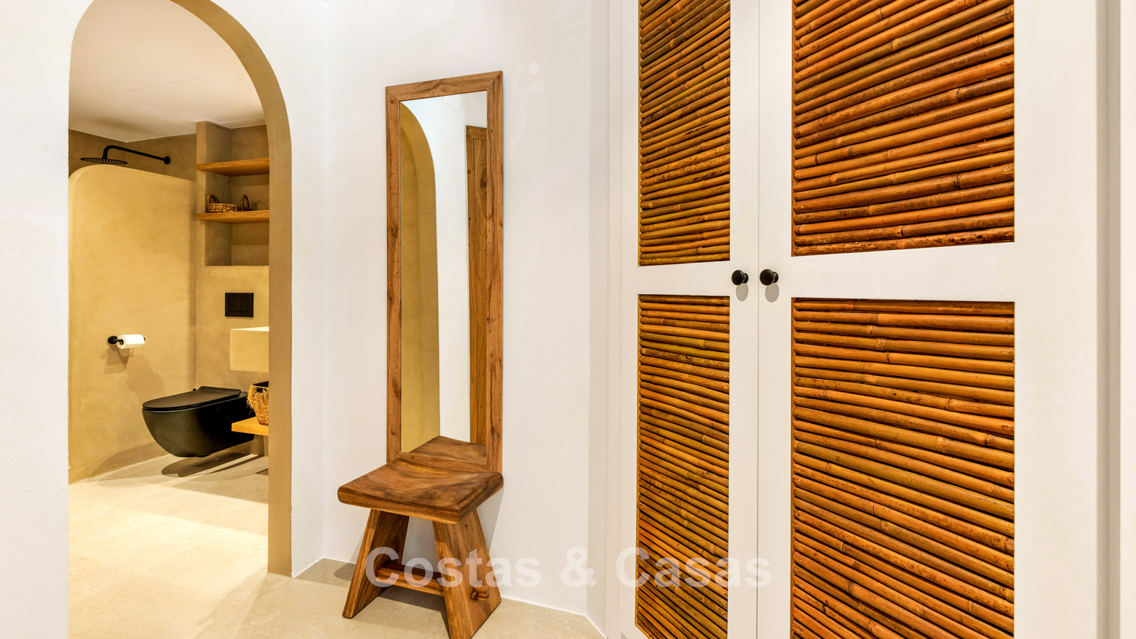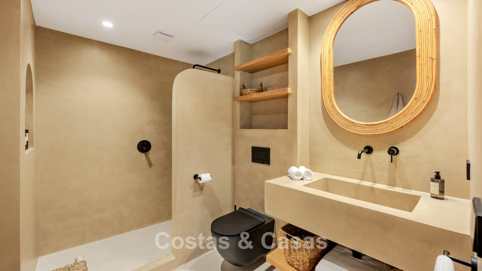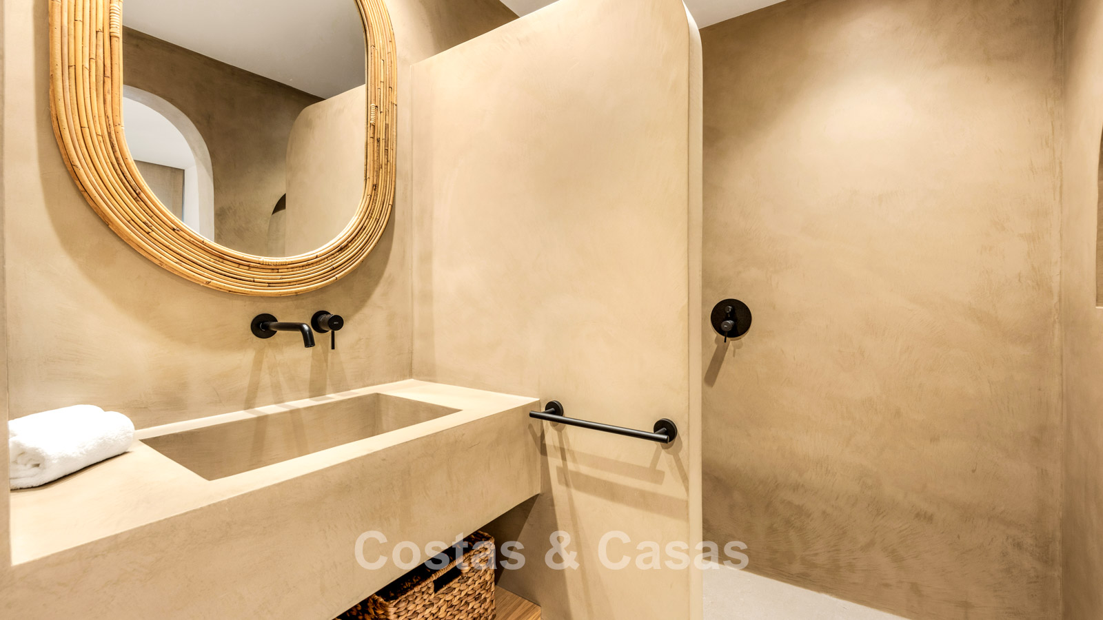2 slaapkamers, 2 badkamers die beiden zijn uitgevoerd in een populaire microcement-afwerking, wat zorgt voor een warme, natuurlijke look.
