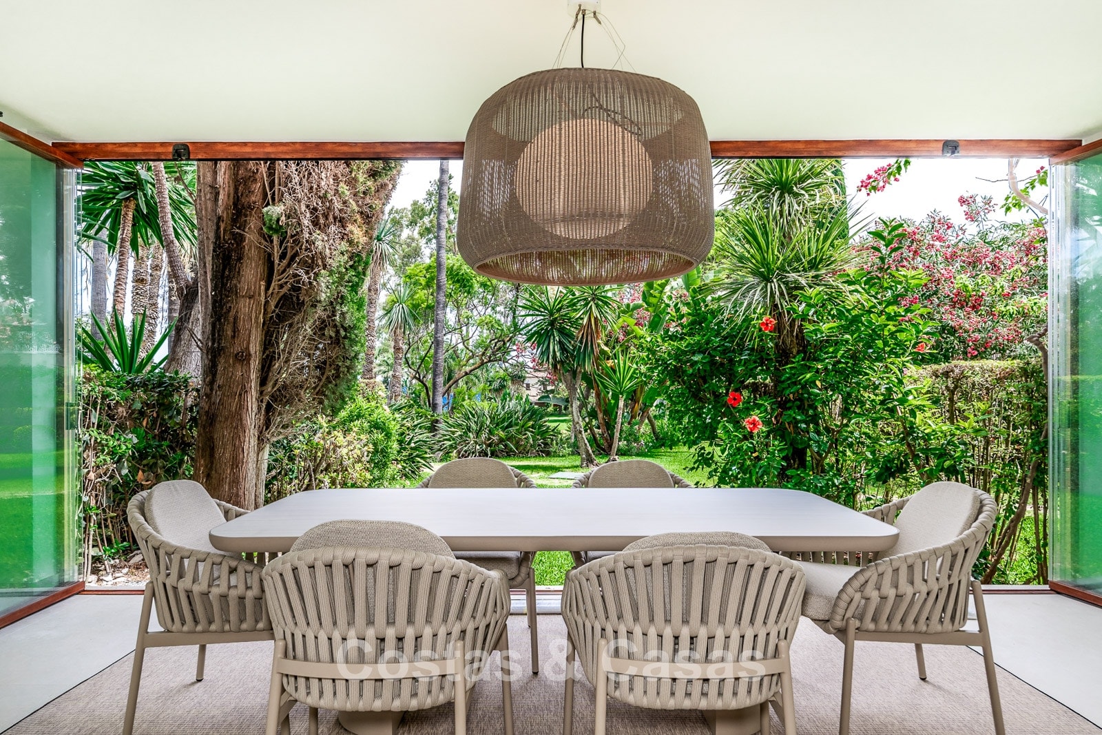 Ruim, eigentijds gerenoveerd herenhuis te koop in een eerstelijnsstrand complex tussen Marbella en Estepona