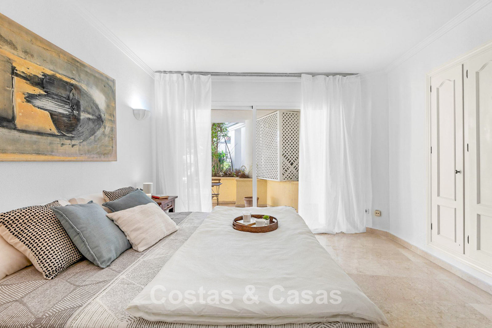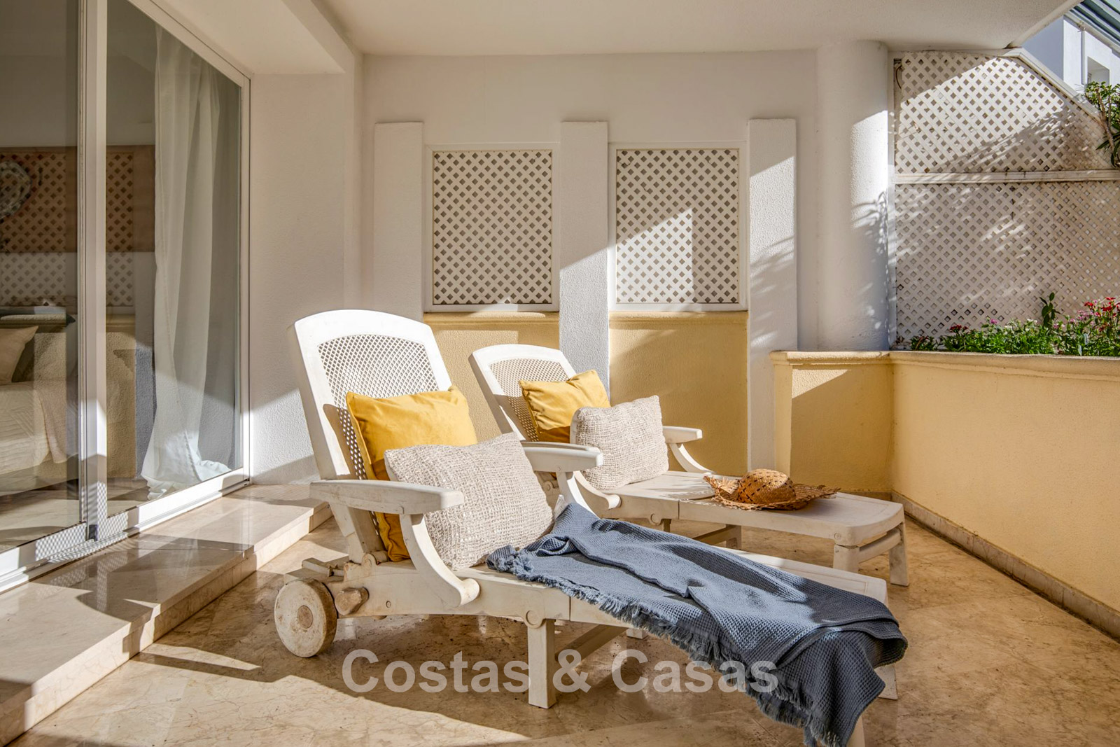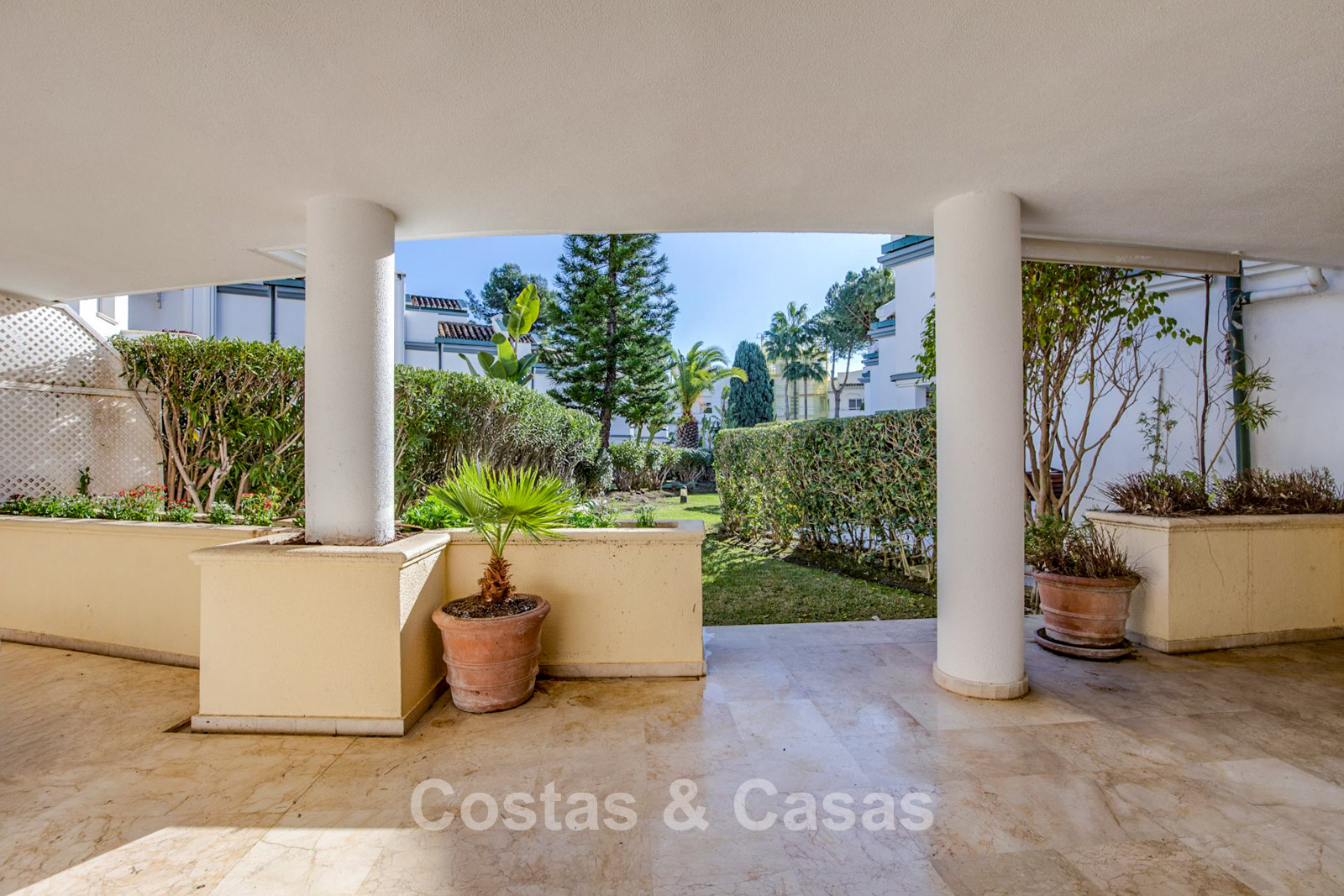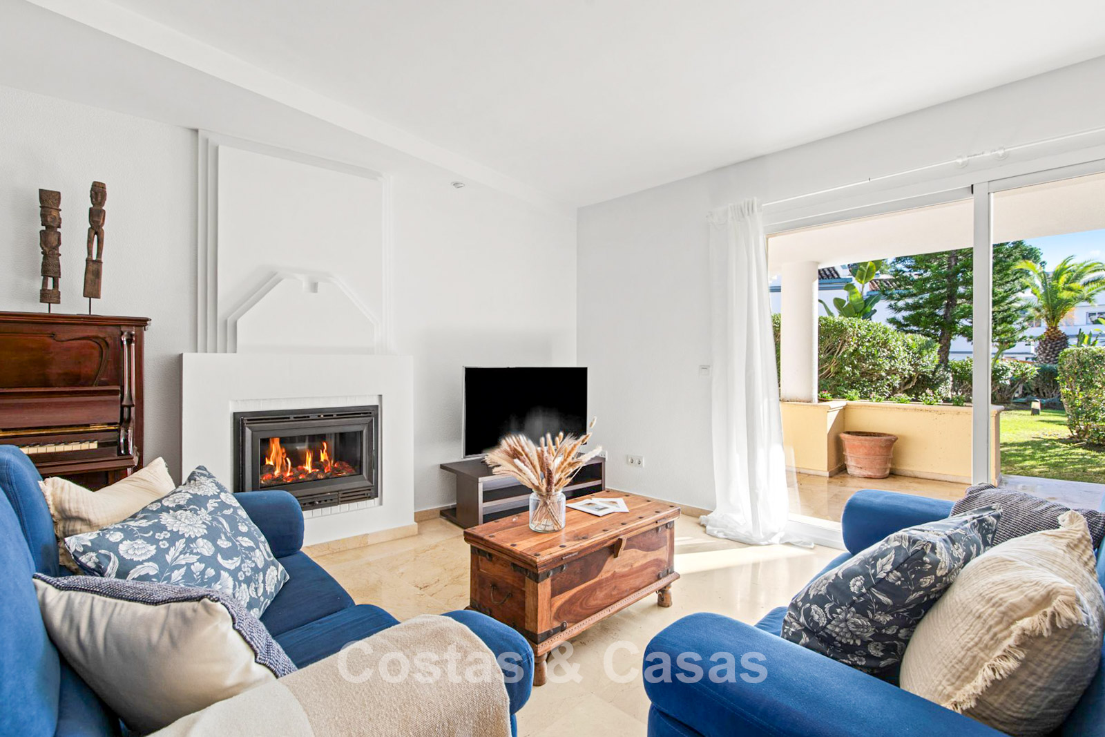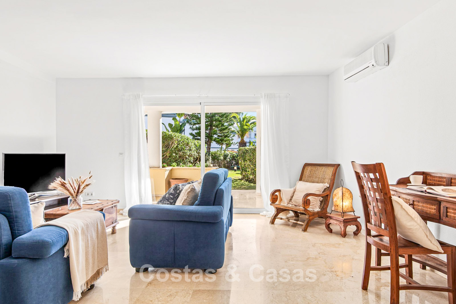 Zeer ruim tuinappartement te koop in een beachfront complex op de New Golden Mile tussen Marbella en Estepona