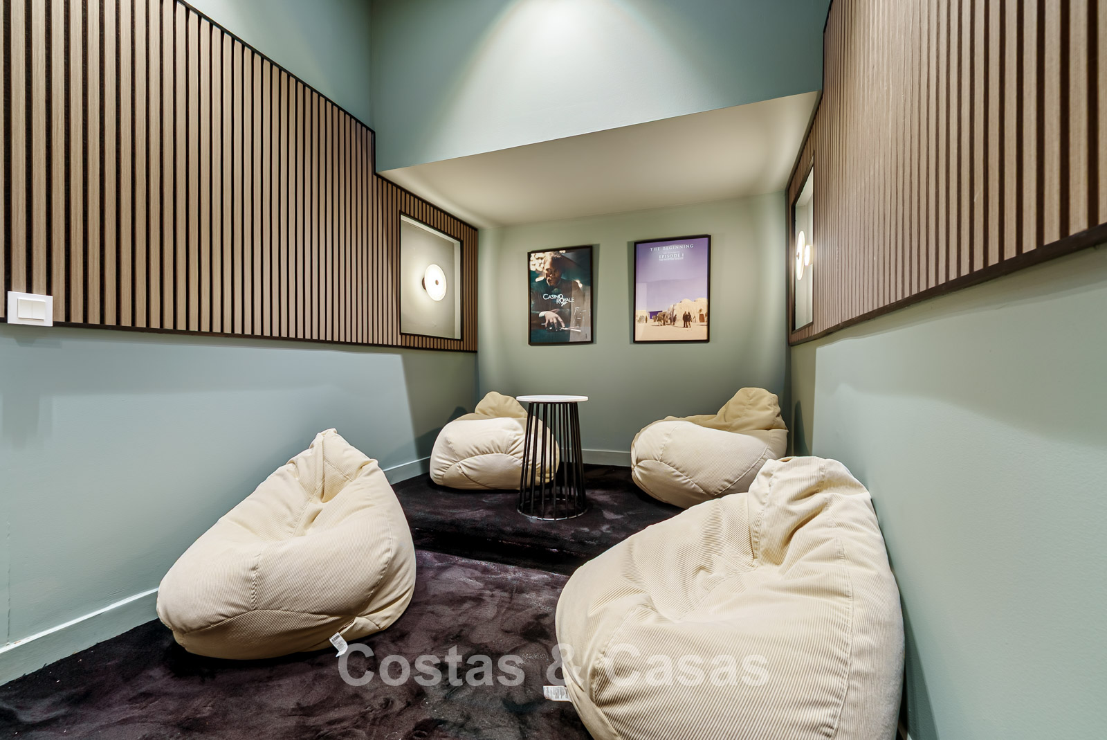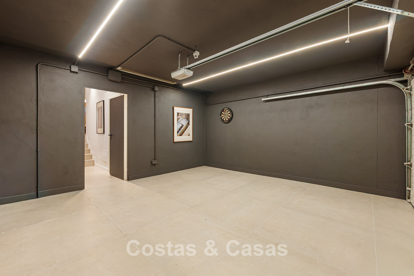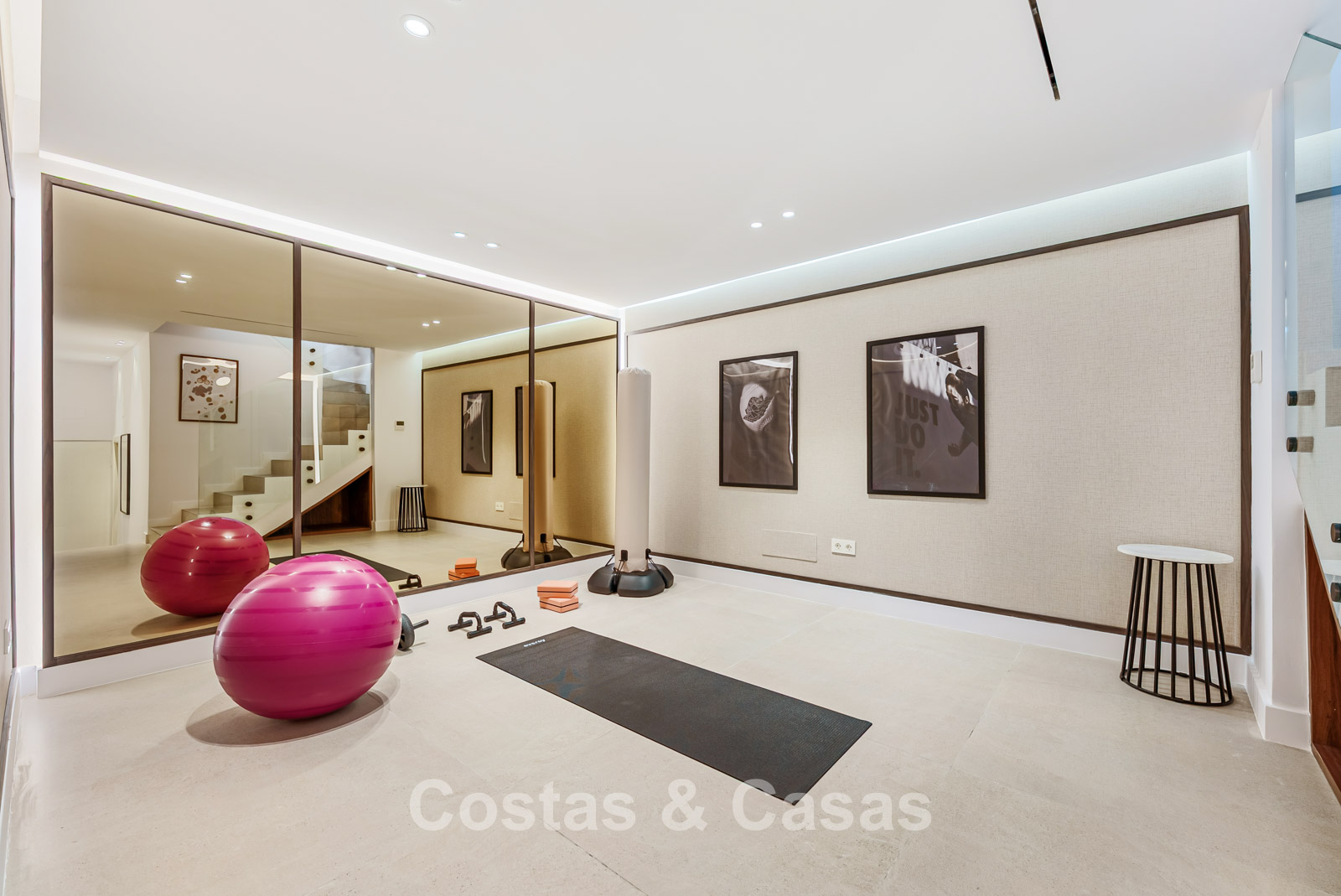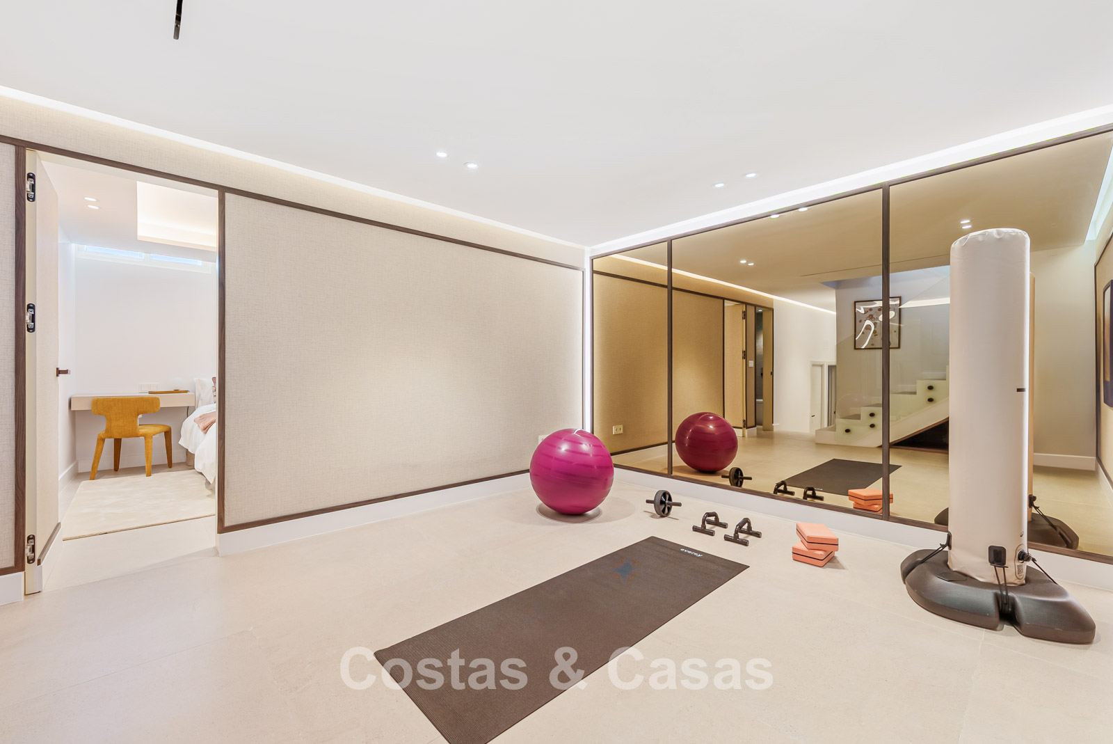 In de kelder is een fitnessruimte en een home-cinema.
