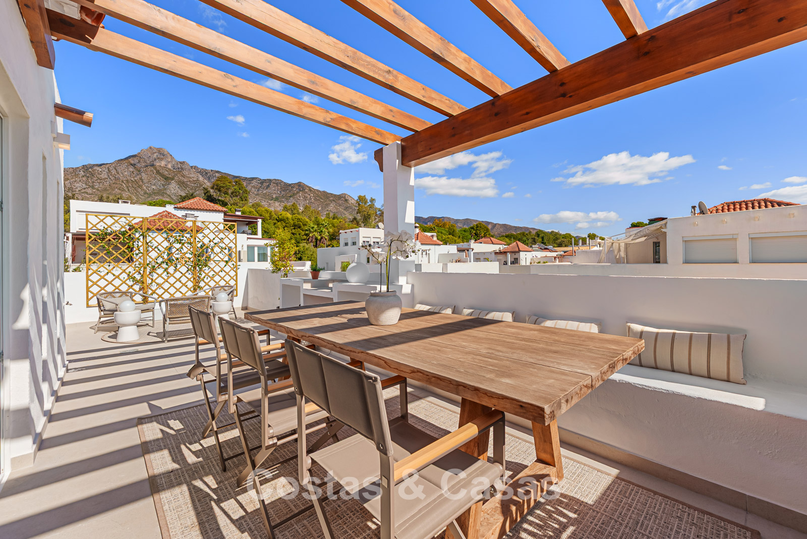Deze beveiligde residentie bevindt zich op een steenworp afstand van de meest iconische landmarks van Marbella, zoals het Puente Romano Resort en de Marbella Club.