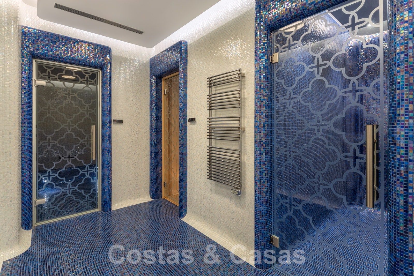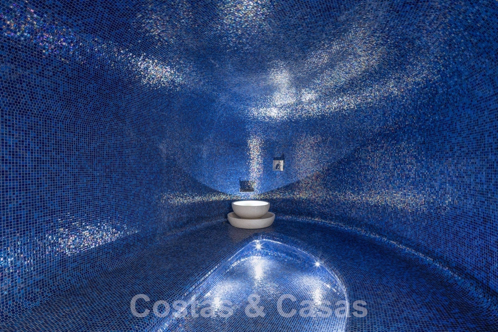 Spafaciliteiten met onder meer een Turks stoombad en een hammam, verfraaid met blauwe tegeltjes.