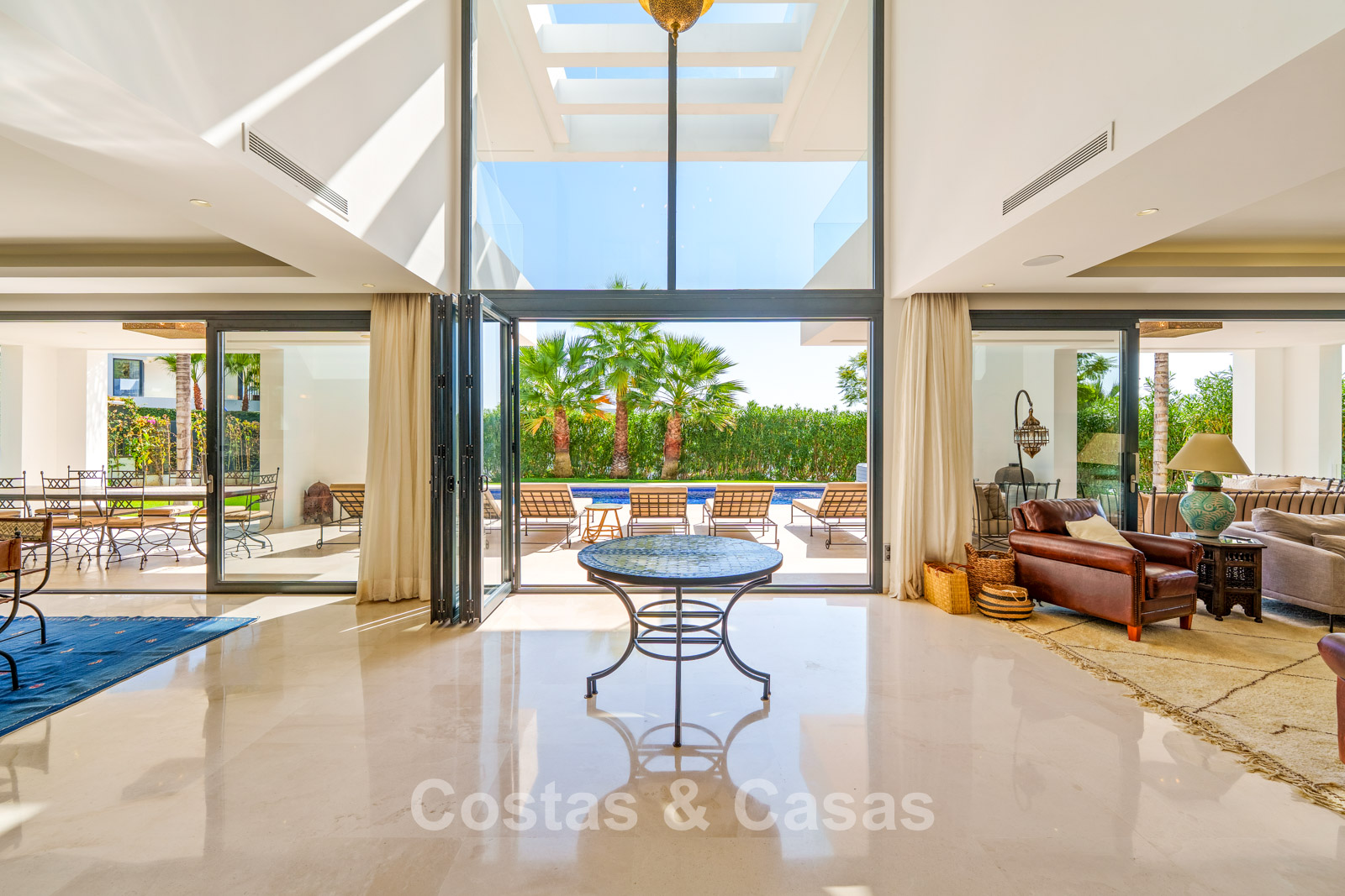 De villa is gericht op het zuidwesten, wat zorgt voor optimale lichtinval en prachtige zonsondergangen.