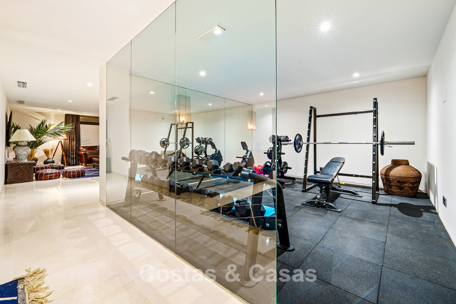 Voorzien van een eigen fitnessruimte en een luxe tv-lounge met lederen zetels.