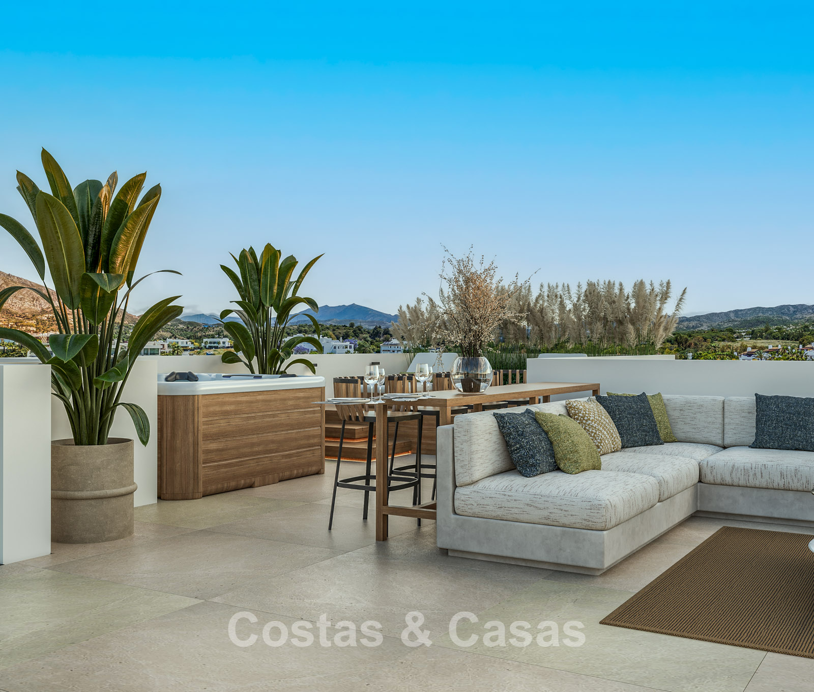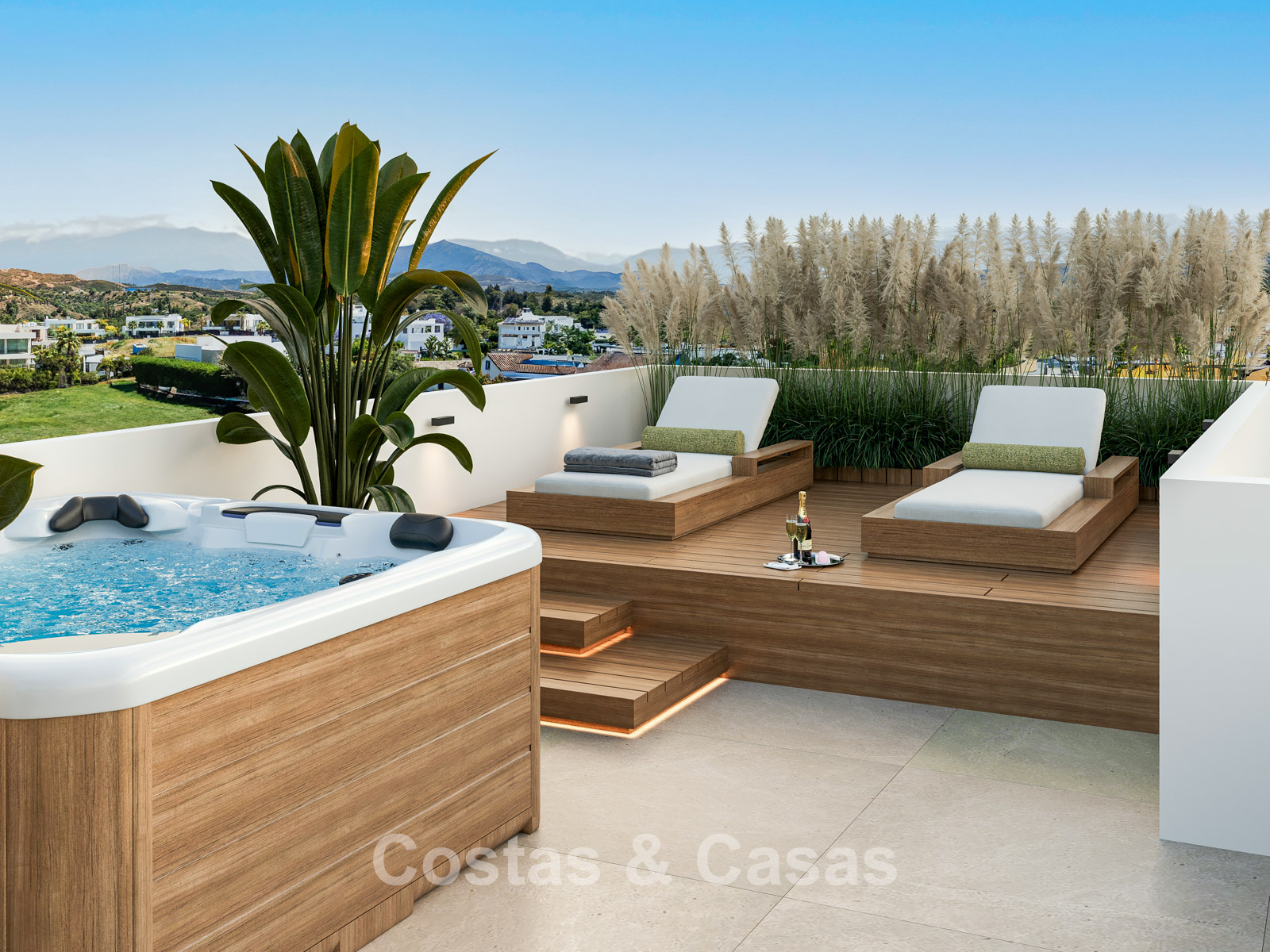 Het dakterras wordt omgetoverd tot een oase van comfort, met een jacuzzi, een hoogwaardige buitenkeuken en ruime plek om te ontspannen en buiten te genieten van heerlijke diners.