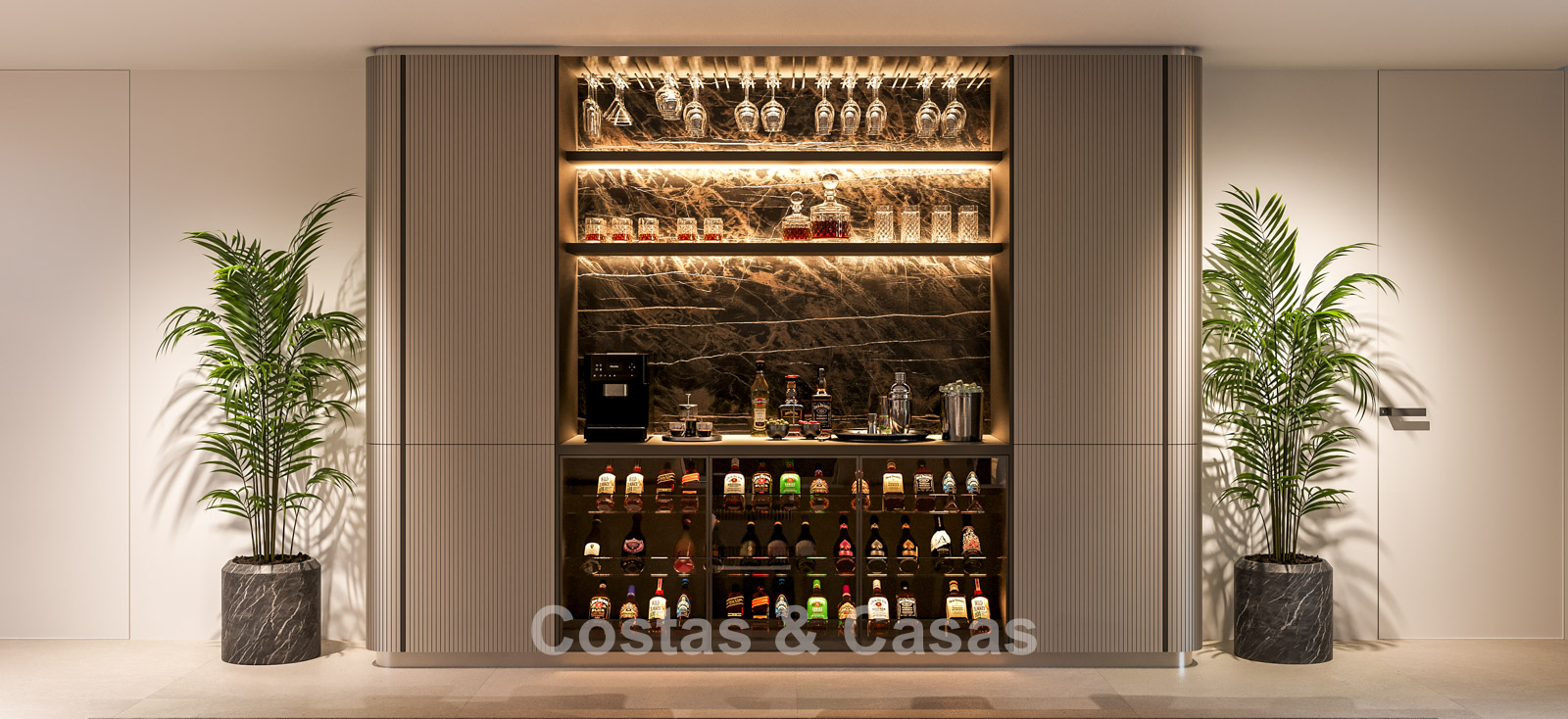 Op de benedenverdieping vindt u een multifunctionele ruimte met tv-lounge en ingebouwde bar en een ontspannende fitnessruimte.