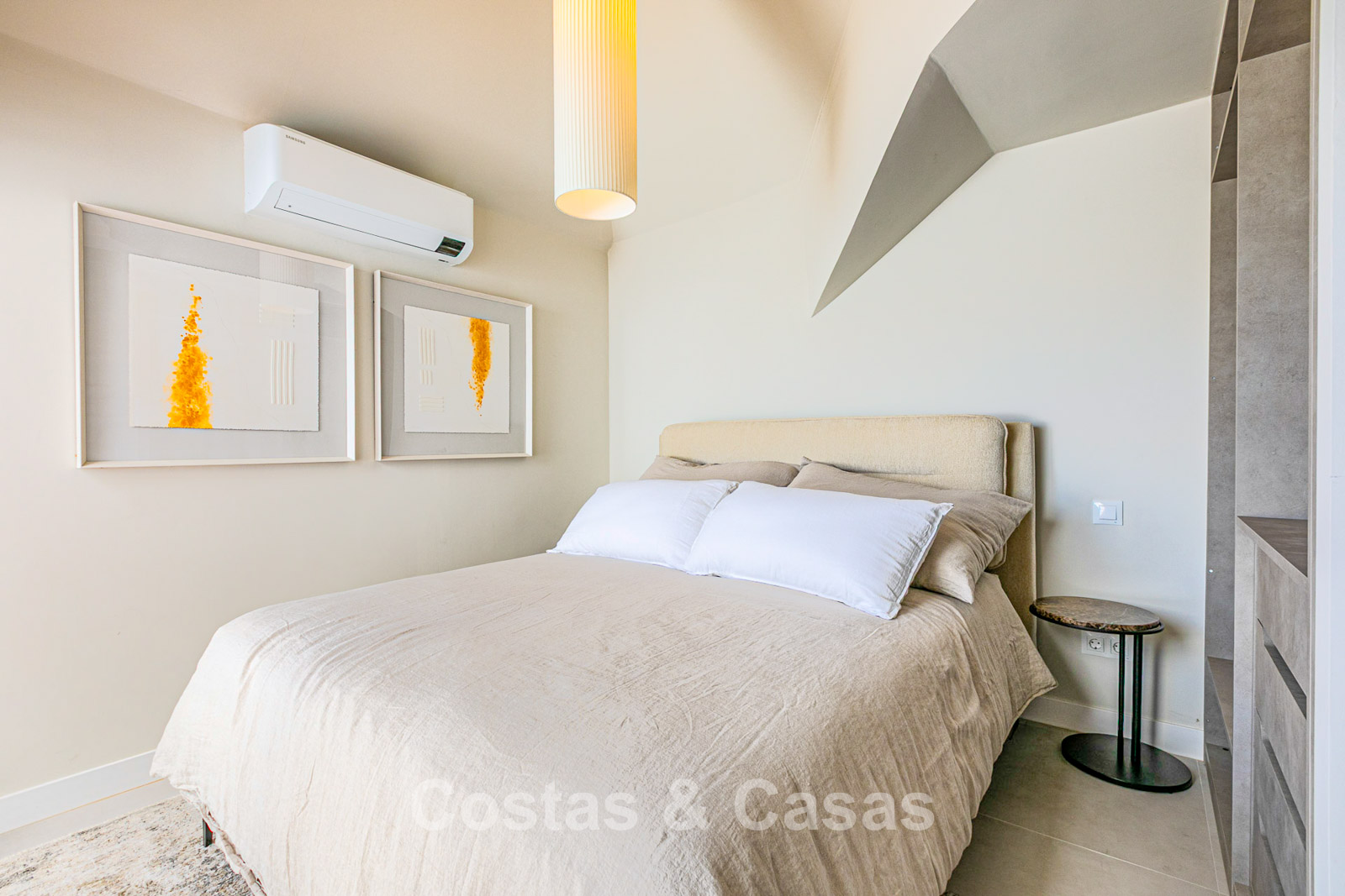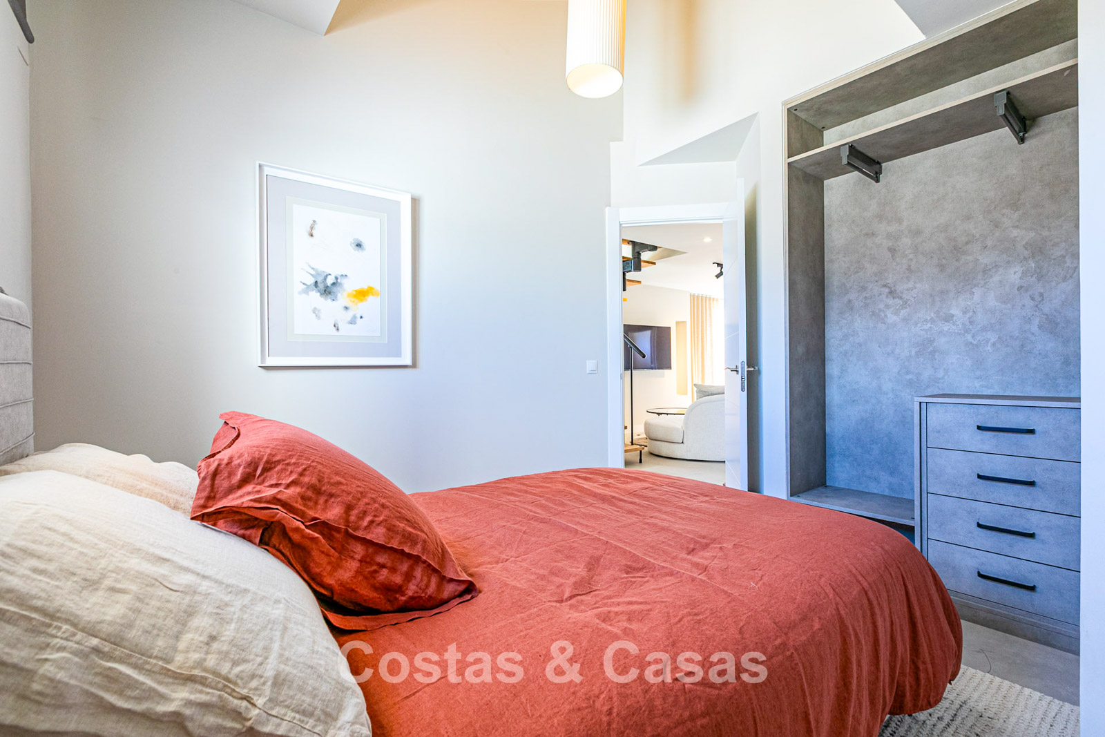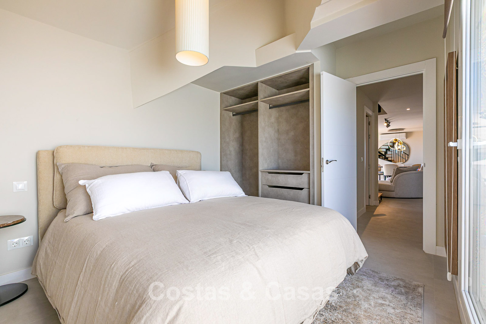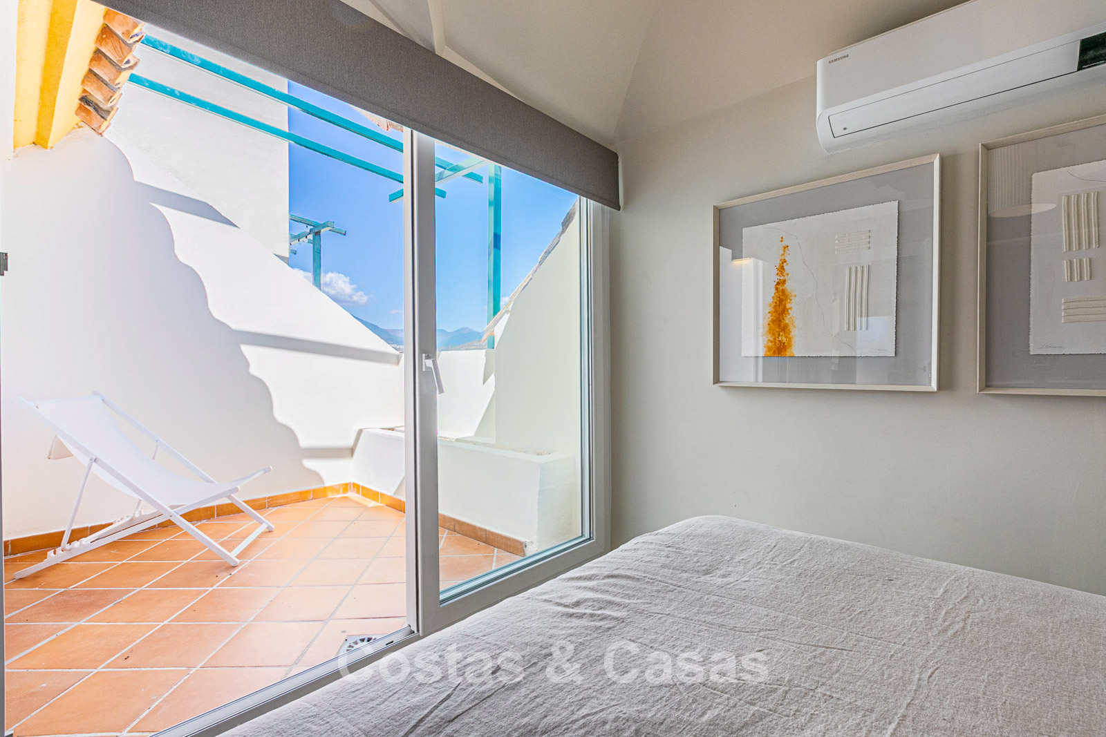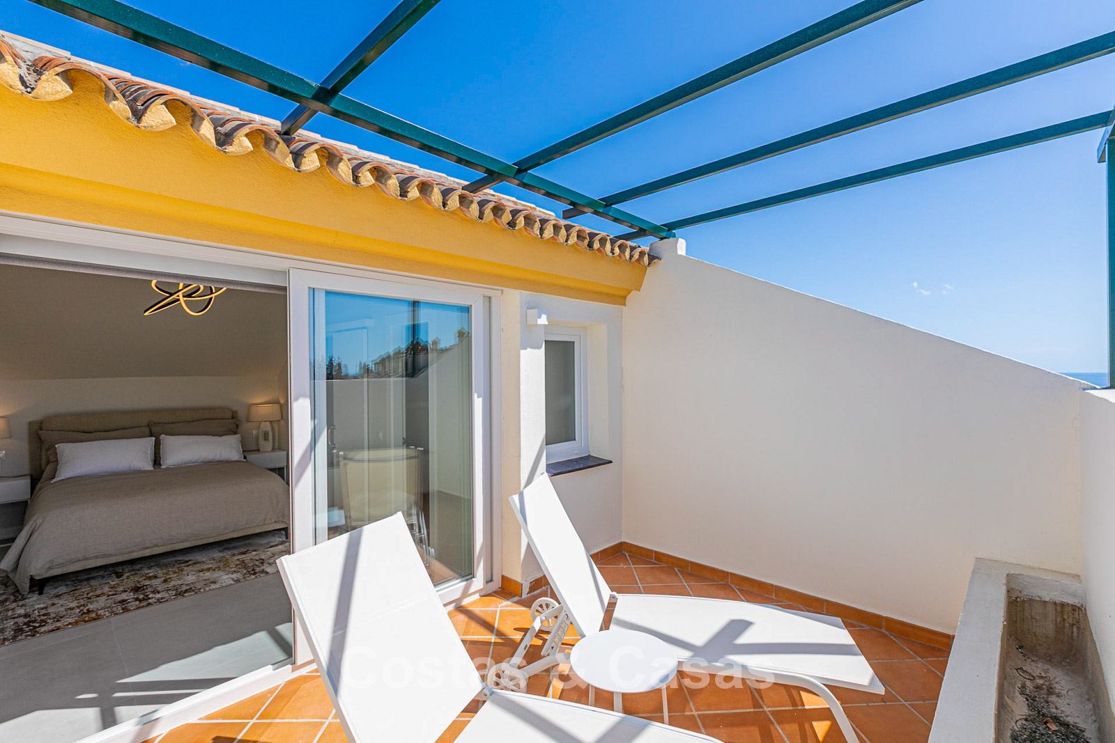 Naast de en-suite badkamer geniet de master slaapkamer ook van een privéterras met zeezicht op het zuidwesten.