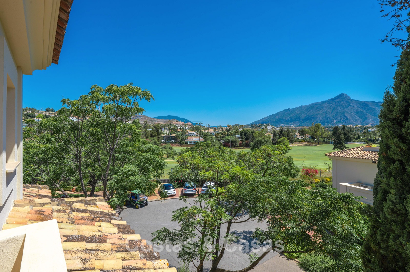 Subliem uitzicht op de golfbanen en op de La Concha berg.