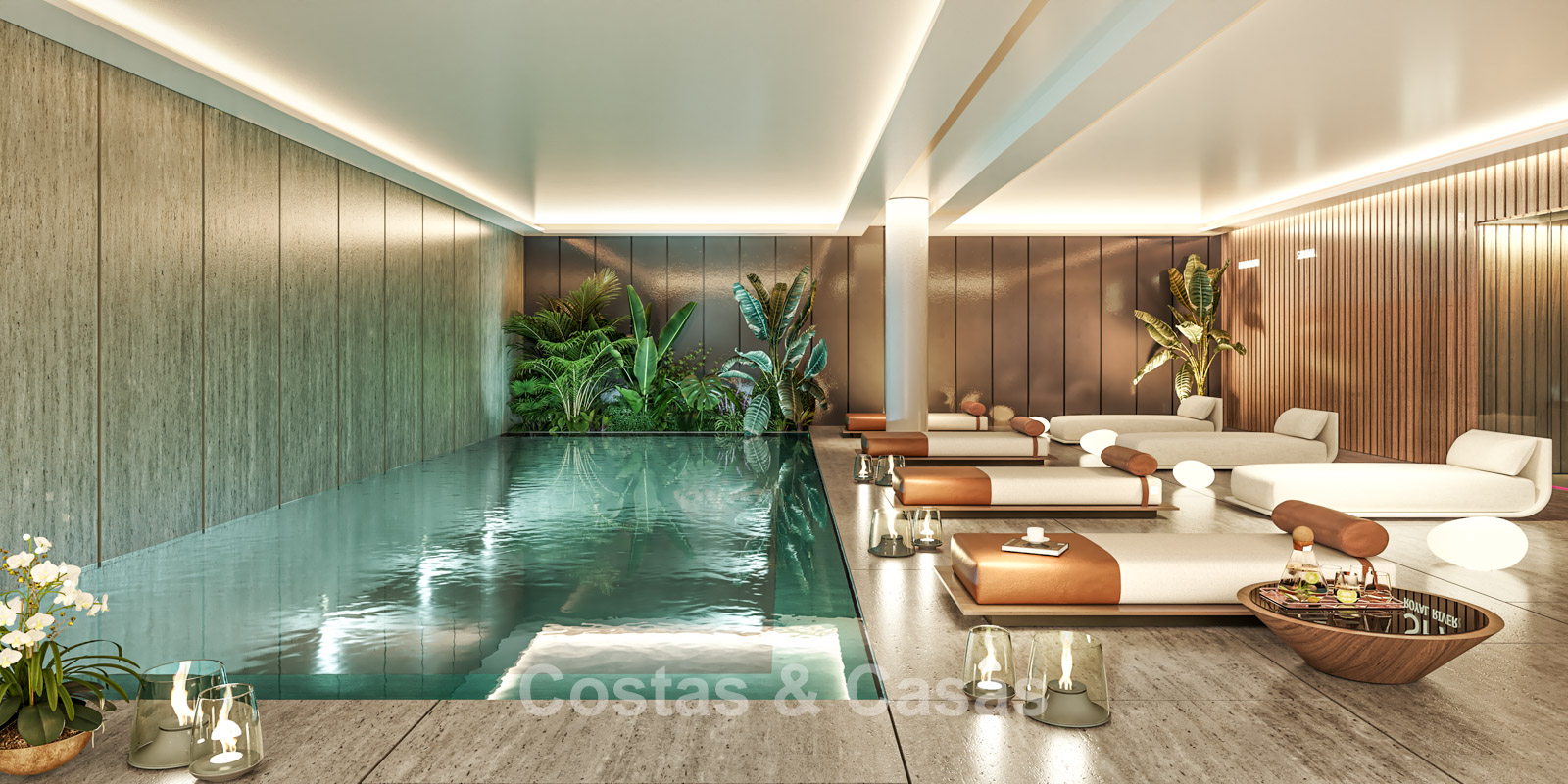 Bewoners hebben toegang tot een groot gemeenschappelijk buitenzwembad met zonneterras, spa met binnenzwembad en sauna en een gym.