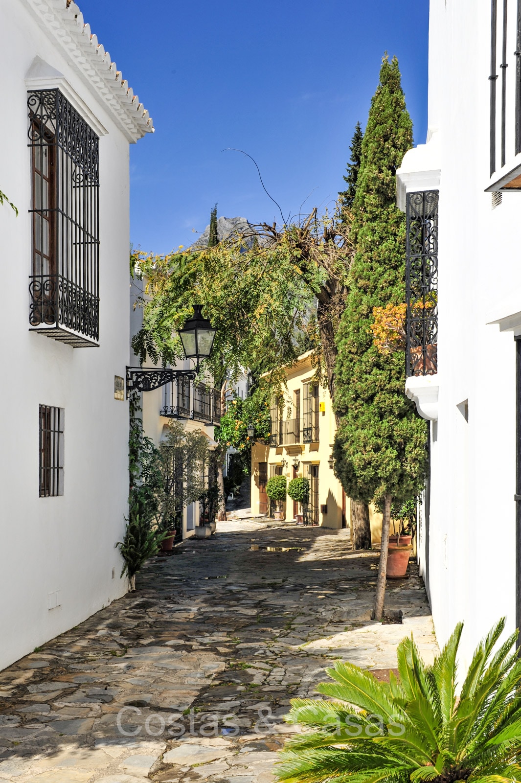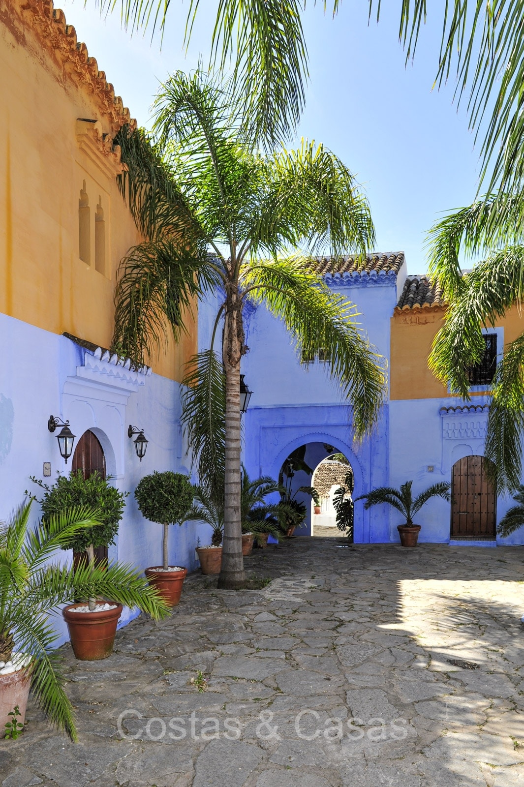 Het traditioneel ‘pueblo’-complex staat bekend om de witgekalkte huizen, smalle straatjes, sfeervolle pleintjes en zonnige terrassen, met karakteristieke betegelde gevels en sierlijke smeedijzeren balkonnetjes die de authentieke Andalusische charme uitstralen.